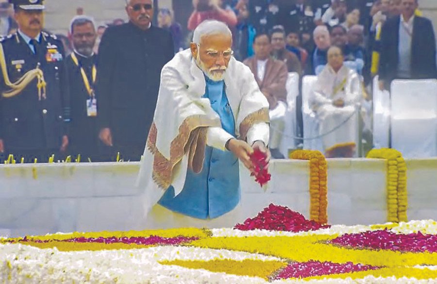 ਰਾਸ਼ਟਰਪਤੀ, ਪ੍ਰਧਾਨ ਮੰਤਰੀ ਤੇ ਹੋਰਾਂ ਨੇ ਮਹਾਤਮਾ ਗਾਂਧੀ ਦੀ ਸਮਾਧੀ ਰਾਜਘਾਟ ’ਤੇ ਸ਼ਰਧਾਂਜਲੀ ਦਿੱਤੀ। ਪ੍ਰਧਾਨ ਮੰਤਰੀ ਨਰਿੰਦਰ ਮੋਦੀ ਨੇ ਅੱਜ ਮਹਾਤਮਾ ਗਾਂਧੀ ਨੂੰ ਉਨ੍ਹਾਂ ਦੀ ਬਰਸੀ ’ਤੇ ਸ਼ਰਧਾਂਜਲੀ ਦਿੱਤੀ। ਸ੍ਰੀ ਮੋਦੀ ਨੇ ਸੋਸ਼ਲ ਮੀਡੀਆ ਪਲੇਟਫਾਰਮ ‘ਐਕਸ’ ’ਤੇ ਲਿਖਿਆ, ”ਮੈਂ ਸਤਿਕਾਰਯੋਗ ਬਾਪੂ ਨੂੰ ਉਨ੍ਹਾਂ ਦੀ ਬਰਸੀ ’ਤੇ ਸ਼ਰਧਾਂਜਲੀ ਦਿੰਦਾ ਹਾਂ। ਮੈਂ ਉਨ੍ਹਾਂ ਸਾਰੇ ਲੋਕਾਂ ਨੂੰ ਵੀ ਸ਼ਰਧਾਂਜਲੀ ਭੇਟ ਕਰਦਾ ਹਾਂ ਜੋ ਸਾਡੇ ਦੇਸ਼ ਲਈ ਸ਼ਹੀਦ ਹੋਏ ਹਨ। ਉਨ੍ਹਾਂ ਦੀ ਕੁਰਬਾਨੀ ਸਾਨੂੰ ਲੋਕਾਂ ਦੀ ਸੇਵਾ ਕਰਨ ਅਤੇ ਸਾਡੇ ਦੇਸ਼ ਲਈ ਉਨ੍ਹਾਂ ਦੇ ਸੁਫਨੇ ਪੂਰਾ ਕਰਨ ਲਈ ਪ੍ਰੇਰਿਤ ਕਰਦੀ ਹੈ।