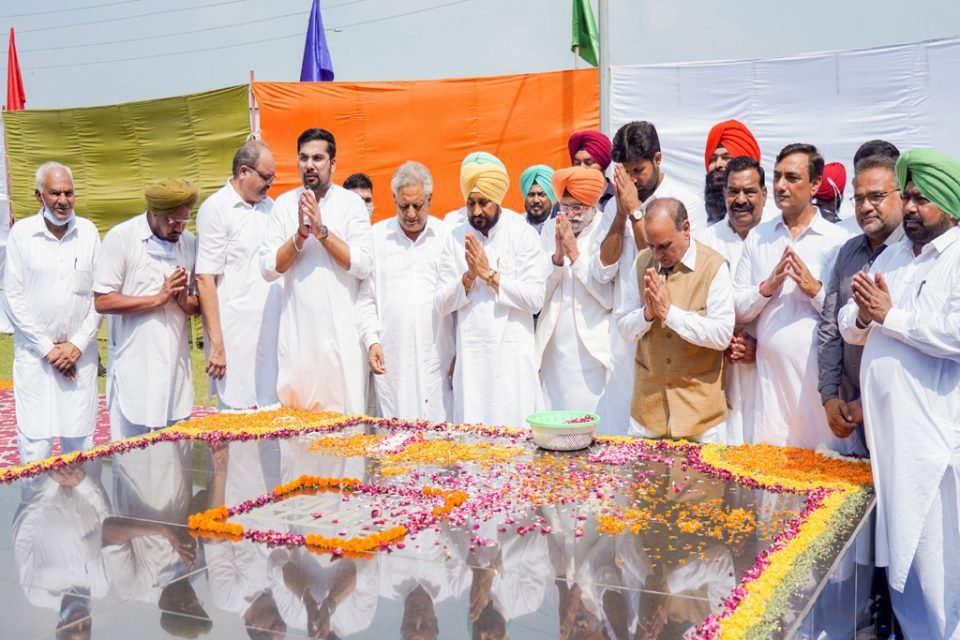 ਨਵਾਂਸ਼ਹਿਰ – ਮੁੱਖ ਮੰਤਰੀ ਚਰਨਜੀਤ ਸਿੰਘ ਚੰਨੀ ਨੇ ਪਿੰਡ ਖਟਕੜ ਕਲਾਂ ਵਿਖੇ ਸ਼ਹੀਦ-ਏ-ਆਜਮ. ਸ. ਭਗਤ ਸਿੰਘ ਦਾ ਜਨਮ ਦਿਨ ਬੜੀ ਸ਼ਰਧਾ ਅਤੇ ਧੂਮਧਾਮ ਨਾਲ ਮਨਾਇਆ। ਇਸ ਮੌਕੇ ਸ਼ਹੀਦ ਭਗਤ ਸਿੰਘ ਅਤੇ ਸ. ਕਿਸ਼ਨ ਸਿੰਘ ਨੂੰ ਸ਼ਰਧਾਂਜਲੀ ਭੇਟ ਕੀਤੀ ਗਈ। ਉਪਰੰਤ ਪੱਤਰਕਾਰਾਂ ਨਾਲ ਗੱਲਬਾਤ ਕਰਦਿਆਂ ਮੁੱਖ ਮੰਤਰੀ ਚਰਨਜੀਤ ਸਿੰਘ ਚੰਨੀ ਨੇ ਕਿਹਾ ਕਿ ਮੈਂ ਆਪਣੇ ਮਹਿਬੂਬ ਨੇਤਾ, ਮਰਹੂਮ ਨੇਤਾ ਕਰਕੇ ਆਇਆਂ ਹਾਂ। ਉਨ੍ਹਾਂ ਦਾ ਜਨਮ ਦਿਨ ਹੈ ਦੇਸ਼ ਵਾਸੀਆਂ ਨੂੰ ਵਧਾਈ ਦੇਣਾ ਆਇਆ ਹਾਂ। ਮੈਂ ਸਿਰਫ ਇਕ ਗੱਲ ਕਹਿਣੀ ਹੈ ਬਾਕੀ ਬਹੁਤੀਆਂ ਗੱਲਾਂ ਨਹੀਂ ਕਰਨੀ। ਮੈਂ ਜੋ ਕਰਦਾ ਹਾਂ ਜੋ ਕਰਨਾ ਹੈ ਕਿ ਇਹ ਸਮਝ ਕੇ ਕਰਨਾ ਹੈ ਕਿ ਮੈਨੂੰ ਸ਼ਹੀਦ ਭਗਤ ਸਿੰਘ ਦੇਖ ਰਿਹਾ ਹੈ। ਕੋਈ ਗਲਤ ਕੰਮ ਨਾ ਹੋ ਜਾਵੇ। ਇਸ ਲਈ ਜੋ ਵੀ ਕੰਮ ਹੋਵੇਗਾ ਸ਼ਹੀਦ ਭਗਤ ਸਿੰਘ ਦੀ ਸੋਚ ਨੂੰ ਮੂਹਰੇ ਰੱਖ ਕੇ ਹੋਵੇਗਾ, ਨੌਜਵਾਨਾਂ ਦੀ ਬਿਹਤਰੀ ਲਈ ਹੋਵੇਗਾ, ਦੇਸ਼ ਤੇ ਸੂਬੇ ਦੀ ਬਿਹਤਰੀ ਲਈ ਹੋਵੇਗਾ। ਦੇਸ਼ ਦੀ ਆਜ਼ਾਦੀ ਨੂੰ ਬਰਕਰਾਰ ਰੱਖਣਾ ਦੇਸ਼ ਦੇ ਲੋਕਾਂ ਨੂੰ ਅੱਗੇ ਲੈ ਕੇ ਜਾਣਾ, ਸਮਾਜ ਨੂੰ ਅੱਗੇ ਲੈ ਕੇ ਜਾਣਾ, ਆਪਸੀ ਭਾਈਚਾਰਾ ਕਾਇਮ ਰੱਖਣਾ, ਸ਼ਹੀਦ-ਏ-ਆਜਮ. ਸ. ਭਗਤ ਸਿੰਘ ਦੀ ਸੋਚ ਤੇ ਪਹਿਰਾ ਦੇਣਾ ਮੇਰਾ ਪਹਿਲਾ ਕਰਤੱਵ ਹੈ। ਇਸ ਲਈ ਹਰ ਕੰਮ ਸ਼ਹੀਦ ਭਗਤ ਸਿੰਘ ਦੀ ਸੋਚ ਤੇ ਹੋਵੇਗਾ। ਕਾਂਗਰਸ ਸਰਕਾਰ ਦੇ ਪਿਛਲੇ ਸਾਢੇ ਚਾਰ ਸਾਲਾਂ ਵਿਚ ਸ਼ਹੀਦ ਭਗਤ ਸਿੰਘ ਦੇ ਪਿੰਡ ਅਤੇ ਹਲਕੇ ਲਈ ਸਰਾਕਰ ਵੱਲੋਂ ਕੋਈ ਪੈਸਾ ਨਾ ਦੇਣ ਬਾਰੇ ਪੁੱਛੇ ਸਵਾਲ ਦੇ ਜਵਾਬ ਵਿਚ ਮੁਖ ਮੰਤਰੀ ਚਰਨਜੀਤ ਸਿੰਘ ਚੰਨੀ ਨੇ ਕਿਹਾ ਕਿ ਜਲਦੀ ਹੀ ਪਿੰਡ ਖਟਕੜ ਕਲਾਂ ਅਤੇ ਜ਼ਿਲ੍ਹਾ ਸ਼ਹੀਦ ਭਗਤ ਸਿੰਘ ਨਗਰ ਦੇ ਹਲਕੇ ਲਈ ਵੱਡਾ ਪੈਕੇਜ ਦਿੱਤਾ ਜਾਵੇਗਾ। ਇਸ ਮੌਕੇ ਮੁੱਖ ਮੰਤਰੀ ਚਰਨਜੀਤ ਸਿੰਘ ਚੰਨੀ ਵੱਲੋਂ ਨੌਜਵਾਨਾਂ ਨੂੰ ਸ਼ਪੋਰਟਸ ਕਿੱਟਾਂ ਵੀ ਵੰਡੀਆ ਗਈਆਂ। ਇਸ ਮੌਕੇ ਕੈਬਨਿਟ ਮੰਤਰੀ ਗੁਰਜੀਤ ਰਾਣਾ, ਕੈਬਨਿਟ ਮੰਤਰੀ ਰਾਜਾ ਵੜਿੰਗ, ਵਿਧਾਇਕ ਅੰਗਦ ਸਿੰਘ, ਵਿਧਾਇਕ ਚੌਧਰੀ ਦਰਸ਼ਨ ਲਾਲ ਮੰਗੂਪੁਰ, ਵਿਧਾਇਕ ਰਾਣਾ ਕੇਪੀ ਸਿੰਘ, ਸਤਵੀਰ ਸਿੰਘ ਪੱਲੀ ਝਿੱਕੀ ਚੇਅਰਮੈਨ ਜ਼ਿਲ੍ਹਾ ਯੋਜਨਾ ਬੋਰਡ, ਚੇਅਰਮੈਨ ਚਮਨ ਸਿੰਘ ਭਾਨਮਜਾਰਾ, ਸਾਬਕਾ ਵਿਧਾਇਕ ਤਰਲੋਚਨ ਸਿੰਘ ਸੂੰਢ, ਸਾਬਕਾ ਵਿਧਾਇਕ ਚੌਧਰੀ ਮੋਹਣ ਲਾਲ, ਡੀਸੀ ਡਾ. ਸ਼ੇਨਾ ਅਗਰਵਾਲ, ਐੱਸਐੱਸਪੀ ਹਰਮਨਬੀਰ ਸਿੰਘ ਗਿੱਲ, ਸਮੇਤ ਹੋਰ ਕਾਂਗਰਸੀ ਆਗੂ ਅਤੇ ਵਰਕਰ ਹਾਜ਼ਰ ਸਨ।