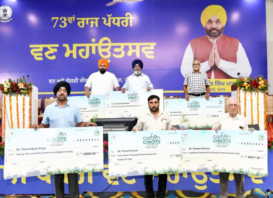 ਮੁੱਖ ਮੰਤਰੀ ਨੇ ਕਿਹਾ ਕਿ ਪੰਜਾਬ ‘ਕਾਰਬਨ ਕਰੈਡਿਟ ਸਕੀਮ’ ਲਾਗੂ ਕਰਨ ਵਾਲਾ ਦੇਸ਼ ਵਿੱਚ ਪਹਿਲਾ ਸੂਬਾ ਹੈ ਤਾਂ ਕਿ ਵਾਤਾਵਰਣ ਨੂੰ ਬਚਾਉਣ ਦੇ ਨਾਲ-ਨਾਲ ਆਲਮੀ ਤਪਸ਼ ਉਤੇ ਕਾਬੂ ਪਾਇਆ ਜਾ ਸਕੇ। ਉਨ੍ਹਾਂ ਕਿਹਾ ਕਿ ਇਹ ਪ੍ਰਾਜੈਕਟ ਟੇਰੀ (ਊਰਜਾ ਤੇ ਖੋਜ ਸੰਸਥਾਨ) ਦੀ ਮਦਦ ਨਾਲ ਸੂਬੇ ਵਿੱਚ ਲਾਗੂ ਕੀਤਾ ਜਾ ਚੁੱਕਾ ਹੈ ਅਤੇ ਪਾਇਲਟ ਪ੍ਰਾਜੈਕਟ ਵਜੋਂ ਸੂਬੇ ਦੇ 3686 ਕਿਸਾਨਾਂ ਨੂੰ ਚਾਰ ਕਿਸ਼ਤਾਂ ਵਿੱਚ 45 ਕਰੋੜ ਰੁਪਏ ਵੰਡੇ ਜਾਣਗੇ। ਭਗਵੰਤ ਸਿੰਘ ਮਾਨ ਨੇ ਅੱਜ ਇਸ ਸਕੀਮ ਅਧੀਨ ਪਹਿਲੀ ਕਿਸ਼ਤ ਵਜੋਂ ਹੁਸ਼ਿਆਰਪੁਰ ਜ਼ਿਲ੍ਹੇ ਦੇ 818 ਕਿਸਾਨਾਂ ਨੂੰ 1.75 ਕਰੋੜ ਰੁਪਏ ਦੇ ਚੈੱਕ ਵੰਡੇ। ਮੁੱਖ ਮੰਤਰੀ ਨੇ ਦੱਸਿਆ ਕਿ ਇਹ ਫੰਡ ਵਾਤਾਵਰਣ ਪ੍ਰਦੂਸ਼ਣ ਦੀ ਰੋਕਥਾਮ ਲਈ ਸਰਗਰਮ ਭੂਮਿਕਾ ਨਿਭਾਅ ਰਹੇ ਕਿਸਾਨਾਂ ਦੇ ਬੈਂਕ ਖਾਤਿਆਂ ਵਿੱਚ ਤਬਦੀਲ ਕੀਤੇ ਜਾਣਗੇ।