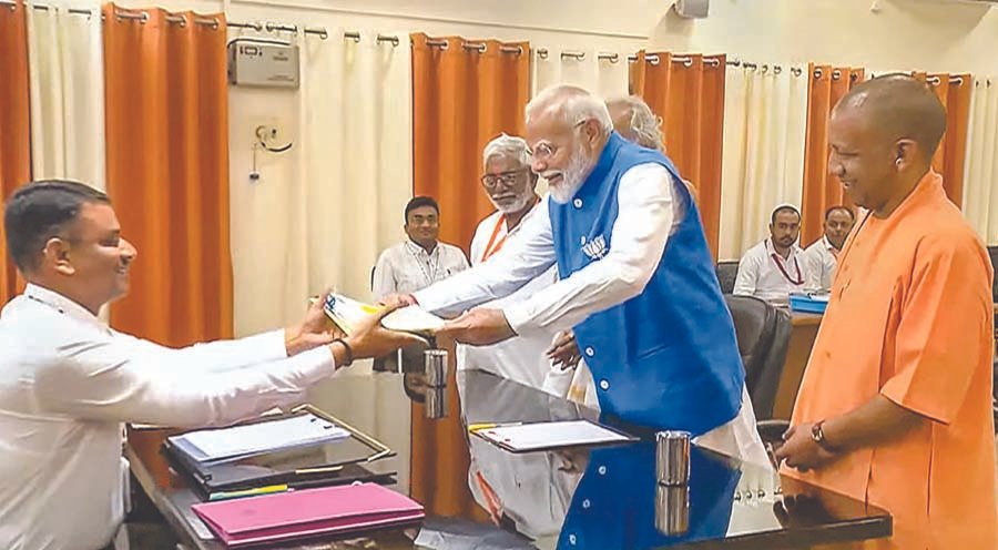 ਵਾਰਾਣਸੀ – ਪ੍ਰਧਾਨ ਮੰਤਰੀ ਨਰਿੰਦਰ ਮੋਦੀ ਨੇ ਅੱਜ ਵਾਰਾਣਸੀ ਲੋਕ ਸਭਾ ਸੀਟ ਤੋਂ ਆਪਣਾ ਨਾਮਜ਼ਦਗੀ ਪੱਤਰ ਦਾਖਲ ਕੀਤਾ। ਉਹ ਇਥੋਂ ਪਹਿਲੀ ਵਾਰ 2014 ਵਿੱਚ ਅਤੇ ਦੂਜੀ ਵਾਰ 2019 ਵਿੱਚ ਜਿੱਤੇ ਹਨ। ਚਿੱਟੇ ਕੁੜਤੇ-ਪਜਾਮੇ ਵਿੱਚ ਸਜੇ ਸ੍ਰੀ ਮੋਦੀ ਆਪਣਾ ਨਾਮਜ਼ਦਗੀ ਪੱਤਰ ਦਾਖ਼ਲ ਕਰਨ ਵਾਰਾਨਸੀ ਜ਼ਿਲ੍ਹਾ ਮੈਜਿਸਟਰੇਟ ਦਫ਼ਤਰ ਪੁੱਜੇ। ਇਸ ਦੌਰਾਨ ਉੱਤਰ ਪ੍ਰਦੇਸ਼ ਦੇ ਮੁੱਖ ਮੰਤਰੀ ਯੋਗੀ ਆਦਿਤਿਆਨਾਥ ਵੀ ਉਨ੍ਹਾਂ ਦੇ ਨਾਲ ਸਨ। ਉਨ੍ਹਾਂ ਨਾਲ ਅਯੁੱਧਿਆ ਦੇ ਰਾਮ ਮੰਦਰ ’ਚ ਭਗਵਾਨ ਰਾਮ ਲੱਲਾ ਦੀ ਮੂਰਤੀ ਦੀ ਸਥਾਪਨਾ ਲਈ ਸ਼ੁਭ ਸਮੇਂ ਦਾ ਐਲਾਨ ਕਰਨ ਵਾਲੇ ਪੰਡਤ ਗਣੇਸ਼ਵਰ ਸ਼ਾਸਤਰੀ ਅਤੇ ਪਟੇਲ ਸੰਘ ਦੇ ਪੁਰਾਣੇ ਵਰਕਰ ਅਤੇ ਪਿਛੜੇ ਵਰਗ ਦੇ ਬੈਜਨਾਥ ਪਟੇਲ ਮੌਜੂਦ ਸਨ। ਇਸ ਤੋਂ ਪਹਿਲਾਂ ਪ੍ਰਧਾਨ ਮੰਤਰੀ ਨੇ ਨਾਮਜ਼ਦਗੀ ਭਰਨ ਤੋਂ ਪਹਿਲਾਂ ਅੱਜ ਗੰਗਾ ਨਦੀ ਦੇ ਕਿਨਾਰੇ ਦਸ਼ਾਸ਼ਵਮੇਧ ਘਾਟ ’ਤੇ ਪੂਜਾ ਕੀਤੀ। ਪ੍ਰਧਾਨ ਮੰਤਰੀ ਨੇ ਵੈਦਿਕ ਜਾਪ ਦੌਰਾਨ ਗੰਗਾ ਘਾਟ ’ਤੇ ਆਰਤੀ ਵੀ ਕੀਤੀ। ਉਨ੍ਹਾਂ ‘ਐਕਸ’ ’ਤੇ ਲਿਖਿਆ, ‘ਆਪਣੀ ਕਾਸ਼ੀ ਨਾਲ ਮੇਰਾ ਰਿਸ਼ਤਾ ਅਨਿੱਖੜਵਾਂ ਅਤੇ ਬੇਮਿਸਾਲ ਹੈ। ਮੈਂ ਬੱਸ ਇੰਨਾ ਕਹਿ ਸਕਦਾ ਹਾਂ ਕਿ ਇਸ ਨੂੰ ਸ਼ਬਦਾਂ ਵਿੱਚ ਬਿਆਨ ਨਹੀਂ ਕੀਤਾ ਜਾ ਸਕਦਾ।’ ਮੋਦੀ ਦੇ ਕਾਗਜ ਦਾਖਲ ਕਰਾਉਣ ਲਈ ਭਾਜਪਾ ਤੇ ਸਹਿਯੋਗੀ ਦਲਾਂ ਦੇ ਪ੍ਰਮੁੱਖ ਨੇਤਾ ਵਾਰਾਨਸੀ ਪੁੱਜੇ ਹੋਏ ਸਨ।
