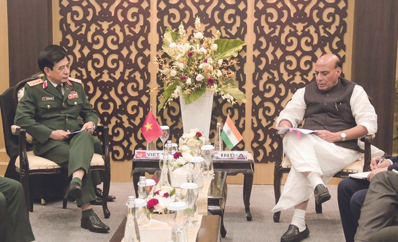 ਉਨ੍ਹਾਂ ਕਿਹਾ,’’ਦੋਹਾਂ ਨੇਤਾਵਾਂ ਨੇ ਸਿਖਲਾਈ, ਕਰਮਚਾਰੀਆਂ ਦੇ ਸਲਾਹ-ਮਸ਼ਵਰੇ ਅਤੇ ਅਭਿਆਸ ਲਈ ਨਿਯਮਿਤ ਰੂਪ ਨਾਲ ਹੋਣ ਵਾਲੇ ਆਦਾਨ-ਪ੍ਰਦਾਨ ਦੀ ਵੀ ਸਮੀਖਿਆ ਕੀਤੀ ਅਤੇ ਰੱਖਿਆ ਉਦਯੋਗ ’ਚ ਸਹਿਯੋਗ ਨੂੰ ਉਤਸ਼ਾਹ ਦੇਣ ਦੇ ਤਰੀਕਿਆਂ ’ਤੇ ਆਪਣੇ ਵਿਚਾਰ ਜ਼ਾਹਰ ਕੀਤੇ।’’ ਮੰਤਰਾਲਾ ਨੇ ਕਿਹਾ ਕਿ ਰਾਜਨਾਥ ਸਿੰਘ ਅਤੇ ਵਿਯਤਨਾਮ ਦੇ ਰਾਸ਼ਟਰੀ ਰੱਖਿਆ ਮੰਤਰੀ ਜਨਰਲ ਫਾਨ ਵਾਨ ਗਿਆਂਗ ਨੇ ’ਭਾਰਤ-ਵਿਯਤਨਾਮ ਰੱਖਿਆ ਸਾਂਝੇਦਾਰੀ ’ਤੇ ਸੰਯੁਕਤ ਦ੍ਰਿਸ਼ਟੀ ਬਿਆਨ’ ਦੇ ਅਮਲ ’ਚ ਪ੍ਰਗਤੀ ਦੀ ਸਮੀਖਿਆ ਕੀਤੀ।