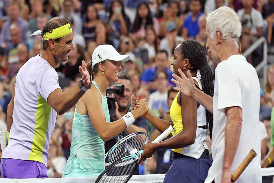 ਗਾਫ ਨੇ ਨਡਾਲ ਤੇ ਸਵਿਆਤੇਕ ਖ਼ਿਲਾਫ਼ ਮਿਕਸਡ ਡਬਲਜ਼ ਮੁਕਾਬਲੇ ਵਿਚ ਸਾਬਕਾ ਟੈਨਿਸ ਸਟਾਰ ਜਾਨ ਮੈਕੇਨਰੋ ਨਾਲ ਜੋੜੀ ਬਣਾਈ ਸੀ। ਯੂਐੱਸ ਓਪਨ ਟੈਨਿਸ ਸੰਘ ਨੇ ਕਿਹਾ ਕਿ ਟੈਨਿਸ ਪਲੇਸ ਫਾਰ ਪੀਸ ਪ੍ਰਦਰਸ਼ਨੀ ਮੈਚ ਦੀਆਂ ਟਿਕਟਾਂ ਦੀ ਵਿਕਰੀ ਤੋਂ ਹੋਣ ਵਾਲੀ ਸੌ ਫ਼ੀਸਦੀ ਆਮਦਨ ਇਕ ਅੰਤਰਰਾਸ਼ਟਰੀ ਗ਼ੈਰ ਸਰਕਾਰੀ ਸੰਗਠਨ ਨੂੰ ਦਿੱਤੀ ਗਈ। ਇਸ ਮੈਚ ਵਿਚ ਯੂਕਰੇਨ ਦੀ ਡਾਇਨਾ ਯਾਸਤ੍ਰੇਮਸਕਾ ਤੇ ਕੈਟਰੀਨਾ ਜਵਾਤਸਕਾ, 2021 ਯੂਐੱਸ ਓਪਨ ਉੱਪ ਜੇਤੂ ਲੈਲਾ ਫਰਨਾਂਡੀਜ਼, ਕਾਰਲੋਸ ਅਲਕਰਾਜ, ਮਾਰੀਆ ਸਕਾਰੀ, ਸਟੇਫਨੋਸ ਸਿਤਸਿਪਾਸ ਤੇ ਜੇਸਿਕਾ ਪੇਗੁਲਾ ਨੇ ਵੀ ਹਿੱਸਾ ਲਿਆ।