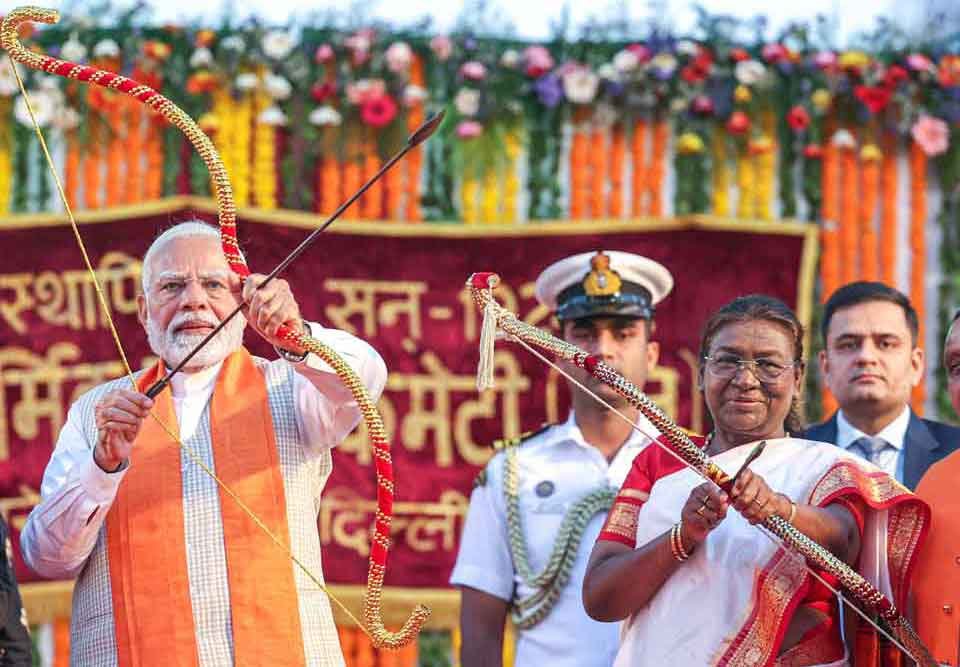 ਨਵੀਂ ਦਿੱਲੀ – ਦਿੱਲੀ ਦੇ ਇਤਿਹਾਸਕ ਲਾਲ ਕਿਲ੍ਹੇ ਦੇ ਮਾਧਵਦਾਸ ਪਾਰਕ ਵਿੱਚ ਅੱਜ ਵਿਜੈਦਸ਼ਮੀ (ਦੁਸਹਿਰਾ) ਦਾ ਤਿਉਹਾਰ ਮਨਾਇਆ ਗਿਆ, ਜਿਸ ਵਿੱਚ ਰਾਸ਼ਟਰਪਤੀ ਦ੍ਰੌਪਦੀ ਮੁਰਮੂ ਅਤੇ ਪ੍ਰਧਾਨ ਮੰਤਰੀ ਨਰਿੰਦਰ ਮੋਦੀ ਨੇ ਸ਼ਿਰਕਤ ਕੀਤੀ। ਇਸ ਵਿਸ਼ੇਸ਼ ਮੌਕੇ ’ਤੇ ਪੀ.ਐੱਮ ਮੋਦੀ ਨੇ ਰਾਵਣ, ਮੇਘਨਾਦ ਅਤੇ ਕੁੰਭਕਰਨ ਦੇ ਪੁਤਲੇ ਸਾੜ ਕੇ ਬੁਰਾਈ ’ਤੇ ਚੰਗਿਆਈ ਦੀ ਜਿੱਤ ਦਾ ਪ੍ਰਤੀਕ ਸੰਦੇਸ਼ ਦਿੱਤਾ।