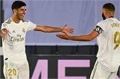 ਬੇਂਜੇਮਾ ਨੇ ਮੈਚ ਦੇ 11ਵੇਂ ਮਿੰਟ ਵਿਚ ਪੈਨਲਟੀ ਕਿੱਕ ‘ਤੇ ਗੋਲ ਕਰਨ ਤੋਂ ਬਾਅਦ 50ਵੇਂ ਮਿੰਟ ਵਿਚ ਮਾਰਕੋ ਏਸੇਂਸੀਆ ਲਈ ਗੋਲ ਦਾ ਮੌਕਾ ਬਣਾਇਆ, ਜਿਸ ਨਾਲ ਟੀਮ ਦੀ ਬੜ੍ਹਤ 2-0 ਹੋ ਗਈ। ਕੋਰੋਨਾ ਵਾਇਰਸ ਦੇ ਕਾਰਣ ਮੁਲਤਵੀ ਹੋਣ ਤੋਂ ਬਾਅਦ ਫਿਰ ਤੋਂ ਸ਼ੁਰੂ ਹੋਈ ਲੀਗ ਦੀ 8 ਮੈਚਾਂ ਵਿਚ ਇਹ ਮੈਡ੍ਰਿਡ ਦੀ 8ਵੀਂ ਜਿੱਤ ਹੈ।