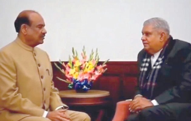 ਨਵੀਂ ਦਿੱਲੀ – ਲੋਕ ਸਭਾ ਸਪੀਕਰ ਓਮ ਬਿਰਲਾ ਨੇ ਬੁੱਧਵਾਰ ਨੂੰ ਰਾਜ ਸਭਾ ਦੇ ਸਪੀਕਰ ਜਗਦੀਪ ਧਨਖੜ ਨਾਲ ਮੁਲਾਕਾਤ ਕੀਤੀ ਅਤੇ ਕੁਝ ਸੰਸਦ ਮੈਂਬਰਾਂ ਵਲੋਂ ਉੱਪ ਰਾਸ਼ਟਰਪਤੀ ਦੇ ਸੰਵਿਧਾਨ ਅਹੁਦੇ ਦਾ ’ਅਪਮਾਨ ਕਰਨ’ ਨੂੰ ਲੈ ਕੇ ਆਪਣੀ ਚਿੰਤਾ ਪ੍ਰਗਟ ਕੀਤੀ। ਤ੍ਰਿਣਮੂਲ ਕਾਂਗਰਸ ਦੇ ਨੇਤਾ ਕਲਿਆਣ ਬੈਨਰਜੀ ਨੇ ਸੰਸਦ ਦੇ ਦੋਹਾਂ ਸਦਨਾਂ ਤੋਂ ਵਿਰੋਧੀ ਮੈਂਬਰਾਂ ਦੀ ਮੁਅੱਤਲੀ ਖ਼ਿਲਾਫ਼ ਮੰਗਲਵਾਰ ਨੂੰ ਸੰਸਦ ਦੀਆਂ ਪੌੜ੍ਹੀਆਂ ’ਤੇ ਵਿਰੋਧੀ ਧਿਰ ਦੇ ਵਿਰੋਧ ਪ੍ਰਦਰਸ਼ਨ ਦੌਰਾਨ ਧਨਖੜ ਦਾ ਮਜ਼ਾਕ ਉਡਾਇਆ ਸੀ। ਬਿਰਲਾ ਨੇ ਧਨਖੜ ਨਾਲ ਆਪਣੀ ਮੁਲਾਕਾਤ ਦੇ ਵੀਡੀਓ ਨੂੰ ਸੋਸ਼ਲ ਮੀਡੀਆ ਮੰਚ ’ਐਕਸ’ ’ਤੇ ਪੋਸਟ ਕੀਤਾ ਅਤੇ ਲਿਖਿਆ,‘‘ਸੰਸਦ ਕੰਪਲੈਕਸ ’ਚ ਕੁਝ ਮਾਨਯੋਗ ਸੰਸਦ ਮੈਂਬਰਾਂ ਵਲੋਂ ਉੱਪ ਰਾਸ਼ਟਰਪਤੀ ਦੇ ਸੰਵਿਧਾਨਕ ਅਹੁਦੇ ਦਾ ਅਪਮਾਨ ਅਤੇ ਮਜ਼ਾਕ ਬਣਾਉਣ ਦੇ ਮਾਮਲੇ ’ਚ ਉੱਪ ਰਾਸ਼ਟਰਪਤੀ ਅਤੇ ਰਾਜ ਸਭਾ ਦੇ ਸਪੀਕਰ ਨਾਲ ਮਿਲ ਕੇ ਡੂੰਘੀ ਚਿੰਤਾ ਅਤੇ ਦੁੱਖ ਪ੍ਰਗਟ ਕੀਤਾ।’’