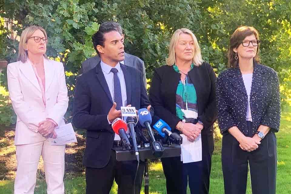 RACGP ਵਿਕਟੋਰੀਆ ਦੇ ਡਿਪਟੀ ਚੇਅਰ ਡਾ. ਆਦਿਲ ਅਜ਼ੀਜ਼, ਪ੍ਰੀਮੀਅਰ ਜੈਕਿੰਟਾ ਐਲਨ, RANZCP ਵਿਕਟੋਰੀਆ ਬ੍ਰਾਂਚ ਦੇ ਚੇਅਰ ਏ/ਪ੍ਰੋਫੈਸਰ ਸਾਈਮਨ ਸਟੈਫ੍ਰੇਸ, ਮਾਨਸਿਕ ਸਿਹਤ ਮੰਤਰੀ ਇੰਗ੍ਰਿਡ ਸਟਿਟ MLC, ਅਤੇ ਸਿਹਤ ਮੰਤਰੀ ਮੈਰੀ-ਐਨ ਥਾਮਸ MP ਦੇ ਨਾਲ।
