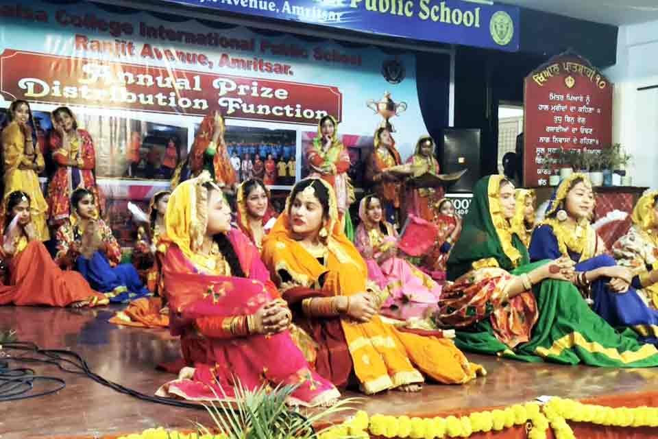 ਖਾਲਸਾ ਕਾਲਜ ਇੰਟਰਨੈਸ਼ਨਲ ਪਬਲਿਕ ਸਕੂਲ, ਰਣਜੀਤ ਐਵੀਨਿਊ ਵਿਖੇ ਕਰਵਾਏ ਗਏ ਸਾਲਾਨਾ ਇਨਾਮ ਵੰਡ ਸਮਾਗਮ ਦੌਰਾਨ ਪੇਸ਼ਕਾਰੀ ਦਿੰਦੇ ਹੋਏ ਵਿਦਿਆਰਥੀ।