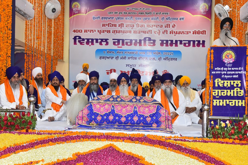 ਅੰਮ੍ਰਿਤਸਰ – ਸ਼੍ਰੋਮਣੀ ਗੁਰਦੁਆਰਾ ਪ੍ਰਬੰਧਕ ਕਮੇਟੀ ਵੱਲੋਂ ਨੌਵੇਂ ਪਾਤਸ਼ਾਹ ਸ੍ਰੀ ਗੁਰੂ ਤੇਗ ਬਹਾਦਰ ਸਾਹਿਬ ਦੇ 400 ਸਾਲਾ ਪ੍ਰਕਾਸ਼ ਪੁਰਬ ਸ਼ਤਾਬਦੀ ਵਰ੍ਹੇ ਦੀ ਸੰਪੂਰਨਤਾ ਅਤੇ 401ਵੇਂ ਪ੍ਰਕਾਸ਼ ਪੁਰਬ ਮੌਕੇ ਕਰਵਾਏ ਗਏ ਵਿਸ਼ਾਲ ਗੁਰਮਤਿ ਸਮਾਗਮ ਦੌਰਾਨ ਸਿੱਖ ਮਸਲਿਆਂ ਦਾ ਤੁਰੰਤ ਹੱਲ ਕਰਨ ਲਈ ਭਾਰਤ ਸਰਕਾਰ ਨੂੰ ਸੰਜੀਦਾ ਹੋਣ ਦਾ ਸੁਨੇਹਾ ਦਿੱਤਾ ਗਿਆ। ਇਥੇ ਗੁਰਦੁਆਰਾ ਸ੍ਰੀ ਮੰਜੀ ਸਾਹਿਬ ਦੀਵਾਨ ਹਾਲ ਵਿਖੇ ਸਜਾਏ ਗਏ ਇਸ ਸਮਾਗਮ ਮੌਕੇ ਸ੍ਰੀ ਅਕਾਲ ਤਖ਼ਤ ਸਾਹਿਬ ਦੇ ਜਥੇਦਾਰ ਗਿਆਨੀ ਹਰਪ੍ਰੀਤ ਸਿੰਘ, ਸ਼੍ਰੋਮਣੀ ਕਮੇਟੀ ਦੇ ਪ੍ਰਧਾਨ ਐਡਵੋਕੇਟ ਹਰਜਿੰਦਰ ਸਿੰਘ ਧਾਮੀ, ਸੱਚਖੰਡ ਸ੍ਰੀ ਹਰਿਮੰਦਰ ਸਾਹਿਬ ਦੇ ਮੁੱਖ ਗ੍ਰੰਥੀ ਗਿਆਨੀ ਜਗਤਾਰ ਸਿੰਘ, ਦਮਦਮੀ ਟਕਸਾਲ ਦੇ ਮੁਖੀ ਬਾਬਾ ਹਰਨਾਮ ਸਿੰਘ ਖਾਲਸਾ, ਬਿਧੀ ਚੰਦ ਸੰਪ੍ਰਦਾ ਦੇ ਮੁਖੀ ਬਾਬਾ ਅਵਤਾਰ ਸਿੰਘ ਸੁਰਸਿੰਘ, ਤਰਨਾ ਦਲ ਦੇ ਮੁਖੀ ਬਾਬਾ ਨਿਹਾਲ ਸਿੰਘ ਹਰੀਆਂ ਵੇਲਾਂ, ਸ਼੍ਰੋਮਣੀ ਕਮੇਟੀ ਦੇ ਜਨਰਲ ਸਕੱਤਰ ਜਥੇਦਾਰ ਕਰਨੈਲ ਸਿੰਘ ਪੰਜੋਲੀ, ਬਾਬਾ ਤੇਜਾ ਸਿੰਘ ਖੁਡਾ ਕੁਰਾਲਾ ਨਿਰਮਲੇ ਤੇ ਬਾਬਾ ਗੁਰਦਿਆਲ ਸਿੰਘ ਟਾਂਡੇ ਵਾਲਿਆਂ ਨੇ ਸੰਬੋਧਨ ਕਰਦਿਆਂ ਆਖਿਆ ਕਿ ਨੌਵੇਂ ਪਾਤਸ਼ਾਹ ਜੀ ਦਾ ਸਮੁੱਚਾ ਜੀਵਨ ਧਰਮ ਅਤੇ ਮਾਨਵਤਾ ਦੀ ਰਖਵਾਲੀ ਲਈ ਸੀ, ਪਰੰਤੂ ਦੁੱਖ ਦੀ ਗੱਲ ਹੈ ਕਿ ਅੱਜ ਗੁਰੂ ਸਾਹਿਬ ਦੇ ਵਰੋਸਾਏ ਸਿੱਖਾਂ ਦੇ ਹੱਕਾਂ ਨੂੰ ਦਬਾਇਆ ਜਾ ਰਿਹਾ ਹੈ। ਲੰਮੇ ਸਮੇਂ ਤੋਂ ਲਟਕਦੇ ਸਿੱਖ ਮਸਲੇ ਹੱਲ ਨਹੀਂ ਕੀਤੇ ਜਾ ਰਹੇ। ਉਨ੍ਹਾਂ ਕਿਹਾ ਕਿ ਦੇਸ਼ ਦੀ ਆਜ਼ਾਦੀ ਲਈ ਵੱਡੀਆਂ ਕੁਰਬਾਨੀਆਂ ਦੇਣ ਵਾਲੇ ਸਿੱਖਾਂ ਸਮੇਤ ਹਰ ਇਕ ਦੀ ਧਾਰਮਿਕ ਆਜ਼ਾਦੀ ਨੌਵੇਂ ਪਾਤਸ਼ਾਹ ਦੀ ਸੋਚ ਅਨੁਸਾਰ ਕਾਇਮ ਰਹਿਣੀ ਚਾਹੀਦੀ ਹੈ ਅਤੇ ਜੇਕਰ ਕਿਸੇ ਨਾਲ ਧੱਕਾ ਹੁੰਦਾ ਹੈ ਤਾਂ ਇਹ ਸਮਝਿਆ ਜਾਵੇਗਾ ਕਿ ਦਿੱਲੀ ਦੀ ਸਰਕਾਰ ਸੰਜੀਦਾ ਨਹੀਂ ਹੈ।