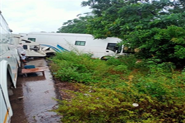 ਖਮਾਣੋਂ – ਚੰਡੀਗੜ੍ਹ-ਲੁਧਿਆਣਾ ਰਾਸ਼ਟਰੀ ਰਾਜ ਮਾਰਗ ‘ ਤੇ ਪਿੰਡ ਖੰਟ-ਮਾਨਪੁਰ ਨੇੜੇ ਹੋਏ ਸੜਕ ਹਾਦਸੇ ‘ਚ ਤਿੰਨ ਬੱਸਾਂ ਤੇ ਇਕ ਬਲੈਰੋ ਜੀਪ ਨੁਕਸਾਨੀ ਗਈ। ਦੱਸਿਆ ਜਾ ਰਿਹਾ ਹੈ ਕਿ ਉਕਤ ਥਾਂ ਨੇੜੇ ਕੁਝ ਦਿਨਾਂ ਤੋਂ ਸਤਿੰਦਰ ਸਰਤਾਜ ਤੇ ਨੀਰੂ ਬਾਜਵਾ ਦੀ ਆਉਣ ਵਾਲੀ ਫਿਲਮ ‘ਕਲੀ ਜੋਟਾ’ ਦੀ ਸ਼ੂਟਿੰਗ ਨੇੜੇ ਸਕੂਲ ‘ਚ ਚੱਲ ਰਹੀ ਸੀ, ਜਿਸ ਦੌਰਾਨ ਓਥੇ ਕੁਝ ਦਿਨਾਂ ਤੋਂ ਕਰੀਬ ਪੰਜ ਵੈਨਿਟੀ ਵੈਨਾਂ ਤੇ ਹੋਰ ਵਾਹਨ ਹਾਈਵੇ ਉਤੇ ਖੜ੍ਹੇ ਸਨ। ਪਿੰਡ ਵਾਸੀਆਂ ਅਨੁਸਾਰ ਹਾਦਸਾ ਤੜਕੇ ਕਰੀਬ 4 ਵੱਜੇ ਵਾਪਰਿਆ। ਗੰਗਾਨਗਰ ਤੋਂ ਚੰਡੀਗੜ੍ਹ ਜਾ ਰਹੀ ਪ੍ਰਾਈਵੇਟ ਬਸ ਨੇ ਇਨ੍ਹਾਂ ਵਾਹਨਾਂ ਨੂੰ ਜ਼ੋਰਦਾਰ ਟੱਕਰ ਮਾਰ ਦਿੱਤੀ। ਸਬੰਧਤ ਚੌਂਕੀ ਪੁਲਿਸ ਸੰਘੋਲ ਹਾਦਸੇ ਦੇ ਕਾਰਨਾਂ ਦੀ ਜਾਂਚ ਕਰ ਰਹੀ ਹੈ। ਚੌਕੀ ਇੰਚਾਰਜ ਸੁਰੇਸ਼ ਕੁਮਾਰ ਅਨੁਸਾਰ ਫਿਲਹਾਲ ਹਾਦਸੇ ‘ਚ ਕਿਸੇ ਦੇ ਗੰਭੀਰ ਜ਼ਖਮੀ ਹੋਣ ਦੀ ਕੋਈ ਸੂਚਨਾ ਸਾਹਮਣੇ ਨਹੀਂ ਆਈ ਹੈ। ਪੁਲਿਸ ਵਲੋਂ ਹਾਦਸੇ ਦੇ ਕਾਰਨਾਂ ਦੀ ਜਾਂਚ ਕੀਤੀ ਜਾ ਰਹੀ ਹੈ।