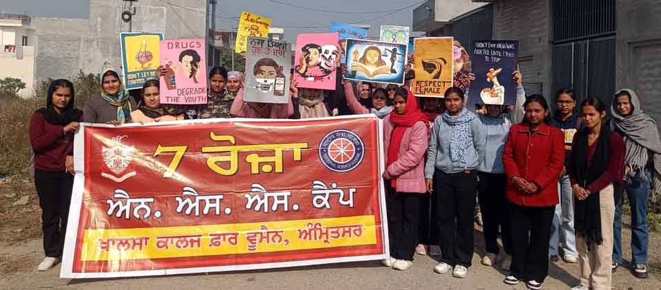 ਅੰਮ੍ਰਿਤਸਰ – ਖ਼ਾਲਸਾ ਕਾਲਜ ਫ਼ਾਰ ਵੂਮੈਨ ਵਿਖੇ ਐੱਨ. ਐੱਸ. ਐੱਸ ਵਿਭਾਗ ਵੱਲੋਂ ਵਲੰਟੀਅਰਾਂ ਨੂੰ ਸਮਾਜਿਕ ਜਾਗਰੂਕਤਾ ਅਤੇ ਸਮਾਜ ਸੇਵਾ ਨਾਲ ਜੋੜਨ ਲਈ 7 ਰੋਜ਼ਾ ਕੈਂਪ ਦਾ ਆਯੋਜਨ ਕੀਤਾ ਗਿਆ। ਖਾਲਸਾ ਯੂਨੀਵਰਸਿਟੀ ਦੇ ਅਕਾਦਮਿਕ ਡੀਨ ਡਾ. ਸੁਰਿੰਦਰ ਕੌਰ ਦੇ ਦਿਸ਼ਾ-ਨਿਰਦੇਸ਼ਾਂ ’ਤੇ ਆਯੋਜਿਤ ਉਕਤ ਕੈਂਪ ’ਚ ਕਈ ਗਤੀਵਿਧੀਆਂ ਕਰਵਾਈਆਂ ਗਈਆਂ।