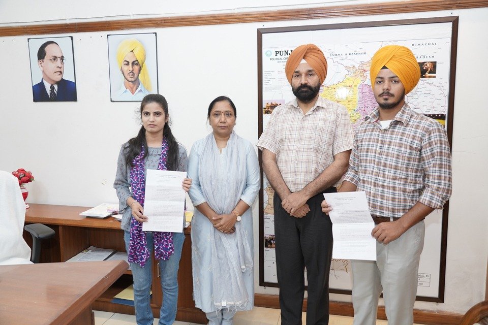 ਚੰਡੀਗੜ – ਪੰਜਾਬ ਦੇ ਸਮਾਜਿਕ ਸੁਰੱਖਿਆ, ਇਸਤਰੀ ਤੇ ਬਾਲ ਵਿਕਾਸ ਮੰਤਰੀ ਡਾ.ਬਲਜੀਤ ਕੌਰ ਨੇ ਮੰਗਲਵਾਰ ਨੂੰ ਤਰਸ ਆਧਾਰ ’ਤੇ ਨੌਕਰੀ ਹਾਸਲ ਕਰਨ ਵਾਲੇ 2 ਉਮੀਦਵਾਰਾਂ ਨੂੰ ਨਿਯੁਕਤੀ ਪੱਤਰ ਦਿੱਤੇ।