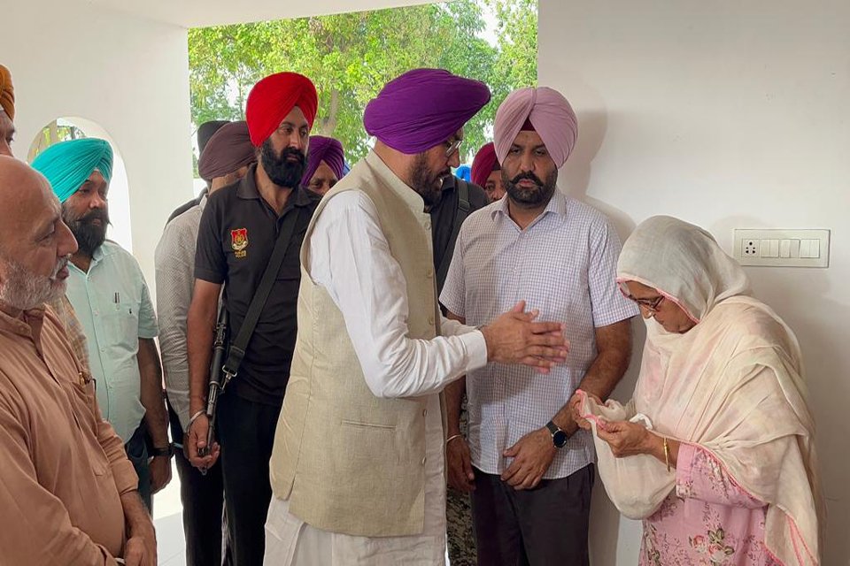 ਪਟਿਆਲਾ – ਪੰਜਾਬ ਦੇ ਪੇਂਡੂ ਵਿਕਾਸ ਅਤੇ ਪੰਚਾਇਤ ਮੰਤਰੀ ਕੁਲਦੀਪ ਸਿੰਘ ਧਾਲੀਵਾਲ ਨੇ ਅੱਜ ਭੁੱਨਰਹੇੜੀ ਬਲਾਕ ਦੇ ਪਿੰਡ ਨੈਣ ਖੁਰਦ ਵਿਖੇ ਪੁੱਜਕੇ, ਪਿਛਲੇ ਦਿਨੀਂ ਆਪਣੀ ਸਹਿਮਤੀ ਨਾਲ ਜੰਗਲਾਤ ਵਿਭਾਗ ਦੀ ਕਰੀਬ 43 ਏਕੜ ਜ਼ਮੀਨ ਤੋਂ ਨਾਜਾਇਜ਼ ਕਬਜ਼ਾ ਛੱਡਣ ਵਾਲੇ ਪਰਿਵਾਰ ਦਾ ਮੁੱਖ ਮੰਤਰੀ ਭਗਵੰਤ ਮਾਨ ਦੀ ਤਰਫ਼ੋਂ ਮਾਤਾ ਪਰਮਿੰਦਰ ਕੌਰ ਦੀ ਝੋਲੀ ਕਣਕ ਦੇ ਦਾਣੇ ਪਾ ਕੇ ਰਵਾਇਤੀ ਢੰਗ ਨਾਲ ਧੰਨਵਾਦ ਕੀਤਾ।