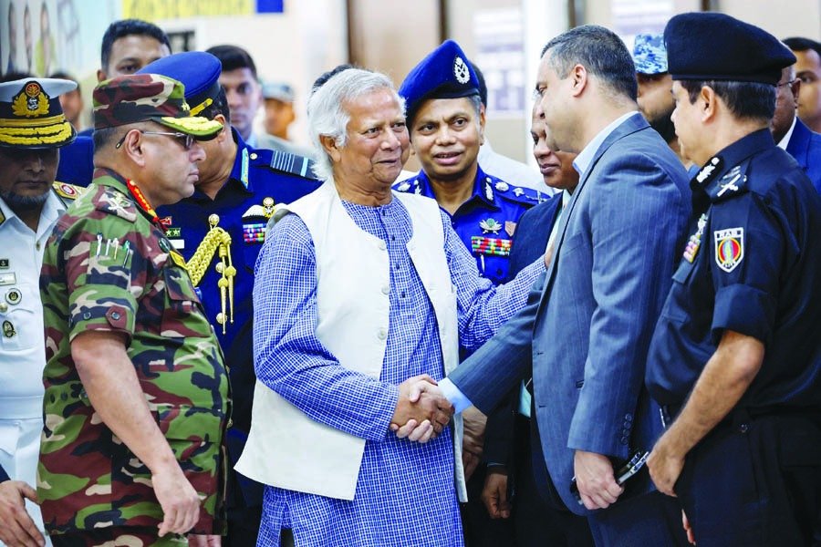 ਯੂਨਸ ਨੂੰ ਲੈ ਕੇ ਅਮੀਰਾਤ ਦੀ ਉਡਾਣ (ਈਕੇ-582) ਸਥਾਨਕ ਸਮੇਂ ਅਨੁਸਾਰ ਦੁਪਹਿਰ 2:10 ਵਜੇ ਹਜ਼ਰਤ ਸ਼ਾਹਜਲਾਲ ਅੰਤਰਰਾਸ਼ਟਰੀ ਹਵਾਈ ਅੱਡੇ ’ਤੇ ਉਤਰੀ। ਹਵਾਈ ਅੱਡੇ ’ਤੇ ਫੌਜ ਮੁਖੀ ਜਨਰਲ ਵਕਾਰ-ਉਜ਼-ਜ਼ਮਾਨ, ਸੀਨੀਅਰ ਅਧਿਕਾਰੀਆਂ, ਵਿਦਿਆਰਥੀ ਨੇਤਾਵਾਂ ਅਤੇ ਸਿਵਲ ਸੁਸਾਇਟੀ ਦੇ ਮੈਂਬਰਾਂ ਨੇ ਉਨ੍ਹਾਂ ਦਾ ਸਵਾਗਤ ਕੀਤਾ। ਹਵਾਈ ਅੱਡੇ ’ਤੇ ਪ੍ਰੈੱਸ ਕਾਨਫਰੰਸ ’ਚ ਯੂਨਸ ਨੇ ਹਸੀਨਾ ਖ਼ਿਲਾਫ਼ ਅੰਦੋਲਨ ਨੂੰ ਸਫਲ ਬਣਾਉਣ ਵਾਲੇ ਨੌਜਵਾਨਾਂ ਦਾ ਧੰਨਵਾਦ ਕੀਤਾ। ਉਨ੍ਹਾਂ ਕਿਹਾ, ’’ਸਾਨੂੰ ਦੂਜੀ ਵਾਰ ਆਜ਼ਾਦੀ ਮਿਲੀ ਹੈ। ਸਾਨੂੰ ਇਸ ਆਜ਼ਾਦੀ ਦੀ ਰਾਖੀ ਕਰਨੀ ਪਵੇਗੀ।” ਯੂਨਸ ਨੇ ਕਿਹਾ, “ਦੇਸ਼ ਹੁਣ ਤੁਹਾਡੇ ਹੱਥਾਂ ਵਿੱਚ ਹੈ। ਹੁਣ ਤੁਹਾਨੂੰ ਇਸ ਨੂੰ ਆਪਣੀਆਂ ਇੱਛਾਵਾਂ ਅਨੁਸਾਰ ਦੁਬਾਰਾ ਬਣਾਉਣਾ ਪਵੇਗਾ। ਦੇਸ਼ ਦੇ ਨਿਰਮਾਣ ਲਈ ਤੁਹਾਨੂੰ ਆਪਣੀ ਰਚਨਾਤਮਕਤਾ ਦੀ ਵਰਤੋਂ ਕਰਨੀ ਪਵੇਗੀ। ਤੁਸੀਂ ਦੇਸ਼ ਲਈ ਆਜ਼ਾਦੀ ਹਾਸਲ ਕੀਤੀ ਹੈ।’’