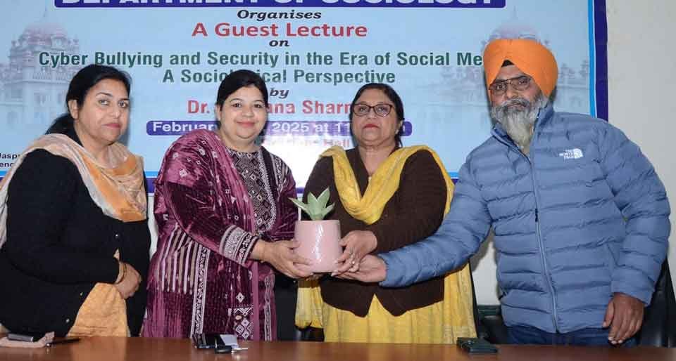 ਅੰਮ੍ਰਿਤਸਰ – ਖ਼ਾਲਸਾ ਕਾਲਜ ਦੇ ਸਮਾਜ ਵਿਗਿਆਨ ਵਿਭਾਗ ਵੱਲੋਂ ਸੋਸ਼ਲ ਮੀਡੀਆ ਦੇ ਦੌਰ ’ਚ ਸਾਈਬਰ ਧੱਕੇਸ਼ਾਹੀ ਅਤੇ ਇਸ ਦੀ ਸੁਰੱਖਿਆ ਦੇ ਸਮਾਜਿਕ ਪਰਿਪੇਖ ਨੂੰ ਉਘਾੜਨ ਲਈ ਵਿਸ਼ੇਸ਼ ਲੈਕਚਰ ਕਰਵਾਇਆ ਗਿਆ। ਕਾਲਜ ਦੇ ਕਾਰਜਕਾਰੀ ਪ੍ਰਿੰਸੀਪਲ ਡਾ: ਅਰਵਿੰਦਰ ਕੌਰ ਕਾਹਲੋਂ ਦੀ ਸਰਪ੍ਰਸਤੀ ਅਧੀਨ ਅਤੇ ਪ੍ਰੋ: ਜਸਪ੍ਰੀਤ ਕੌਰ ਡੀਨ ਹਿਊਮੈਨੀਟੀ ਦੀ ਅਗਵਾਈ ਹੇਠ ਆਯੋਜਿਤ ਇਸ ਮਹੱਤਵਪੂਰਨ ਵਿਸ਼ੇ ’ਤੇ ਗੱਲਬਾਤ ਕਰਨ ਲਈ ਡਾ: ਰਚਨਾ ਸ਼ਰਮਾ ਸਹਾਇਕ ਪ੍ਰੋਫੈਸਰ ਸਮਾਜ ਵਿਗਿਆਨ ਵਿਭਾਗ, ਗੁਰੂ ਨਾਨਕ ਦੇਵ ਯੂਨੀਵਰਸਿਟੀ ਪਹੁੰਚੇ ਸਨ।