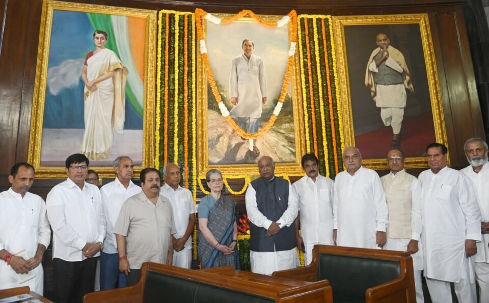 ਨਵੀਂ ਦਿੱਲੀ – 2024: ਰਾਜ ਸਭਾ ਵਿੱਚ ਵਿਰੋਧੀ ਧਿਰ ਦੇ ਨੇਤਾ, ਸ਼੍ਰੀ ਮਲਿਕਾਰਜੁਨ ਖੜਗੇ, ਸੰਸਦ ਮੈਂਬਰਾਂ ਅਤੇ ਸਾਬਕਾ ਮੈਂਬਰਾਂ ਨੇ ਅੱਜ ਕੇਂਦਰੀ ਹਾਲ ਵਿੱਚ ਭਾਰਤ ਦੇ ਸਾਬਕਾ ਪ੍ਰਧਾਨ ਮੰਤਰੀ, ਸ਼੍ਰੀ ਰਾਜੀਵ ਗਾਂਧੀ ਨੂੰ ਉਨ੍ਹਾਂ ਦੀ ਜਯੰਤੀ ‘ਤੇ ਸ਼ਰਧਾ ਦੇ ਫੁੱਲ ਭੇਟ ਕੀਤੇ। ਸੰਵਿਧਾਨ ਸਦਨ ਦੇ.ਲੋਕ ਸਭਾ ਦੇ ਸਕੱਤਰ ਜਨਰਲ ਸ਼੍ਰੀ ਉਤਪਲ ਕੁਮਾਰ ਸਿੰਘ ਨੇ ਵੀ ਸੰਵਿਧਾਨ ਸਦਨ ਦੇ ਸੈਂਟਰਲ ਹਾਲ ਵਿੱਚ ਸ਼੍ਰੀ ਰਾਜੀਵ ਗਾਂਧੀ ਨੂੰ ਸ਼ਰਧਾਂਜਲੀ ਭੇਟ ਕੀਤੀ। ਸੰਵਿਧਾਨ ਸਦਨ (ਪਹਿਲਾਂ ਸੰਸਦ ਭਵਨ) ਦੇ ਸੈਂਟਰਲ ਹਾਲ ਵਿੱਚ ਸ਼੍ਰੀ ਰਾਜੀਵ ਗਾਂਧੀ ਦੀ ਤਸਵੀਰ ਨੂੰ ਭਾਰਤ ਦੇ ਤਤਕਾਲੀ ਰਾਸ਼ਟਰਪਤੀ, ਡਾ. ਸ਼ੰਕਰ ਦਿਆਲ ਸ਼ਰਮਾ ਨੇ 20 ਅਗਸਤ 1993 ਨੂੰ ਖੋਲ੍ਹਿਆ ਸੀ।