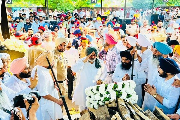 ਇਸ ਮੌਕੇ ਪੰਜਾਬ ਦੇ ਮੁੱਖ ਮੰਤਰੀ ਭਗਵੰਤ ਸਿੰਘ ਮਾਨ ਦੀ ਤਰਫ਼ੋਂ ਡਿਪਟੀ ਕਮਿਸ਼ਨਰ ਪਟਿਆਲਾ ਸ਼ੌਕਤ ਅਹਿਮਦ ਪਰੇ ਨੇ ਮ੍ਰਿਤਕ ਦੇਹ ‘ਤੇ ਰੀਥ ਰੱਖ ਕੇ ਸ਼ਰਧਾਂਜਲੀ ਭੇਂਟ ਕੀਤੀ। ਜਦੋਂ ਕਿ ਪੰਜਾਬ ਸਰਕਾਰ ਵੱਲੋਂ ਕੈਬਨਿਟ ਮੰਤਰੀਆਂ ਚੇਤਨ ਸਿੰਘ ਜੌੜਾਮਾਜਰਾ ਅਤੇ ਡਾ. ਬਲਬੀਰ ਸਿੰਘ ਨੇ ਰੀਥਾਂ ਰੱਖਕੇ ਸ਼ਰਧਾ ਦੇ ਫੁੱਲ ਭੇਂਟ ਕੀਤੇ। ਇਸ ਮੌਕੇ ਪਟਿਆਲਾ ਪੁਲਿਸ ਦੀ ਟੁਕੜੀ ਨੇ ਮਾਤਮੀ ਧੁਨ ਵਜਾਈ ਅਤੇ ਜਵਾਨਾਂ ਨੇ ਹਥਿਆਰ ਉਲਟੇ ਕਰਕੇ ਗਾਰਡ ਆਫ਼ ਆਨਰ ਦਿੰਦਿਆਂ ਫ਼ਾਇਰ ਕਰਕੇ ਸਲਾਮੀ ਦਿੱਤੀ।