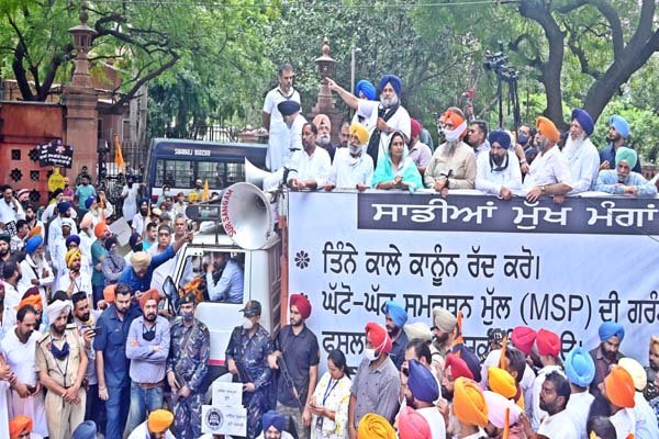 ਸਰਦਾਰ ਸੁਖਬੀਰ ਸਿੰਘ ਬਾਦਲ ਨੇ 3 ਕਾਲੇ ਕਾਨੂੰਨ ਬਣਾਉਣ ਦਾ ਇਕ ਸਾਲ ਪੂਰਾ ਹੋਣ ’ਤੇ ਇਥੇ ਗੁਰਦੁਆਰਾ ਰਕਾਬਗੰਜ ਸਾਹਿਬ ਤੋਂ ਸੰਸਦ ਤੱਕ ਵਿਸ਼ਾਲ ਰੋਸ ਮਾਰਚ ਦੀ ਅਗਵਾਈ ਕੀਤੀ। ਦਿੱਲੀ ਪੁਲਿਸ ਵੱਲੋਂ ਲਾਈਆਂ ਅਣਕਿਆਸੀਆਂ ਰੁਕਾਵਟਾਂ ਦੇ ਬਾਵਜੂਦ ਹਜ਼ਾਰਾਂ ਪਾਰਟੀ ਵਰਕਰ ਗੁਰਦੁਆਰਾ ਸਾਹਿਬ ਪਹੁੰਚੇ ਅਤੇ ਅਰਦਾਸ ਕਰਨ ਉਪਰੰਤ ਸੰਸਦ ਵੱਲ ਰੋਸ ਮਾਰਚ ਕੀਤਾ। ਪਾਰਟੀ ਦੀ ਸੀਨੀਅਰ ਲੀਡਰਸ਼ਿਪ ਨੇ ਸੰਸਦ ਵੱਲ ਮਾਰਚ ਕਰਦਿਆਂ ਕਾਲਾ ਦਿਵਸ ਮਨਾ ਕੇ ਗ੍ਰਿਫਤਾਰੀਆਂ ਦਿੱਤੀਆਂ।
