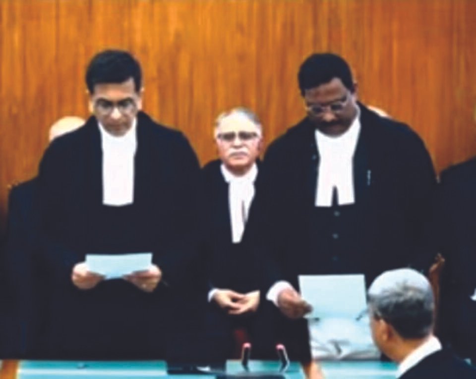 ਨਵੀਂ ਦਿੱਲੀ – ਕਰਨਾਟਕ ਹਾਈਕੋਰਟ ਦੇ ਚੀਫ਼ ਜਸਟਿਸ ਪੀ. ਬੀ. ਵਰਾਲੇ ਨੂੰ ਸੀ. ਜੇ. ਆਈ. ਡੀ. ਵਾਈ. ਚੰਦਰਚੂੜ ਨੇ ਵੀਰਵਾਰ ਨੂੰ ਸੁਪਰੀਮ ਕੋਰਟ ਦੇ ਜੱਜ ਵਜੋਂ ਸਹੁੰ ਚੁਕਾਈ। ਸੁਪਰੀਮ ਕੋਰਟ ਕੰਪਲੈਕਸ ’ਚ ਆਯੋਜਿਤ ਇਕ ਪ੍ਰੋਗਰਾਮ ’ਚ ਜਸਟਿਸ ਵਰਾਲੇ ਨੂੰ ਅਹੁਦੇ ਦੀ ਸਹੁੰ ਚੁਕਾਈ ਗਈ। ਜਸਟਿਸ ਵਰਲੇ ਨੂੰ ਸੁਪਰੀਮ ਕੋਰਟ ’ਚ ਜੱਜ ਵਜੋਂ ਨਿਯੁਕਤ ਕਰਨ ਦੀ ਮਨਜ਼ੂਰੀ ਕੇਂਦਰ ਨੇ ਬੁੱਧਵਾਰ ਨੂੰ ਦਿੱਤੀ ਸੀ। ਉਨ੍ਹਾਂ ਦੇ ਸਹੁੰ ਚੁੱਕਣ ਤੋਂ ਬਾਅਦ ਸੁਪਰੀਮ ਕੋਰਟ ’ਚ ਜੱਜਾਂ ਦੀ ਗਿਣਤੀ ਪੂਰੀ ਹੋ ਗਈ ਹੈ।