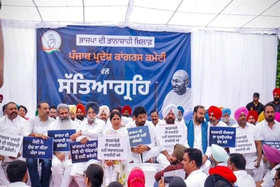 ਚੰਡੀਗੜ੍ਹ – ਪੰਜਾਬ ਕਾਂਗਰਸ ਨੇ ਅੱਜ ਇਨਫੋਰਸਮੈਂਟ ਡਾਇਰੈਕਟੋਰੇਟ (ਈਡੀ) ਵੱਲੋਂ ਪਾਰਟੀ ਪ੍ਰਧਾਨ ਸੋਨੀਆ ਗਾਂਧੀ ਨੂੰ ਦੂਜੀ ਵਾਰ ਤੰਗ-ਪਰੇਸ਼ਾਨ ਕਰਨ ਦੇ ਖ਼ਿਲਾਫ਼ ਸੱਤਿਆਗ੍ਰਹਿ ਰਾਹੀਂ ਰੋਸ ਪ੍ਰਦਰਸ਼ਨ ਕੀਤਾ। ਇਸ ਸੱਤਿਆਗ੍ਰਹਿ ਵਿੱਚ ਹਜ਼ਾਰਾਂ ਪਾਰਟੀ ਵਰਕਰਾਂ ਅਤੇ ਆਗੂਆਂ ਨੇ ਹਿੱਸਾ ਲਿਆ।