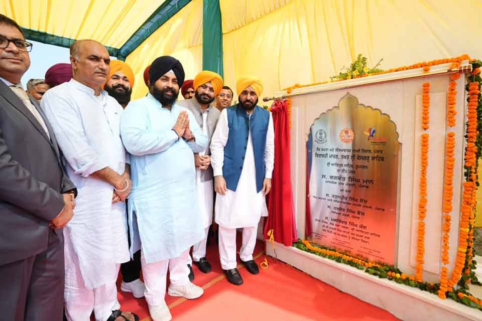 ਪੰਜਾਬ ਦੇ ਮੁੱਖ-ਮੰਤਰੀ ਭਗਵੰਤ ਸਿੰਘ ਮਾਨ ਕੈਬਨਿਟ ਮੰਤਰੀ ਹਰਜੋਤ ਸਿੰਘ ਬੈਂਸ ਅਤੇ ਹੋ ਨੇਤਾ ਸ੍ਰੀ ਅਨੰਦਪੁਰ ਸਾਹਿਬ ਵਿੱਚ ਬਣਾਏ ਜਾ ਰਹੇ ਵਿਰਾਸਤੀ ਮਾਰਗ ਦਾ ਨੀਂਹ ਪੱਥਰ ਰੱਖਣ ਮੌਕੇ।