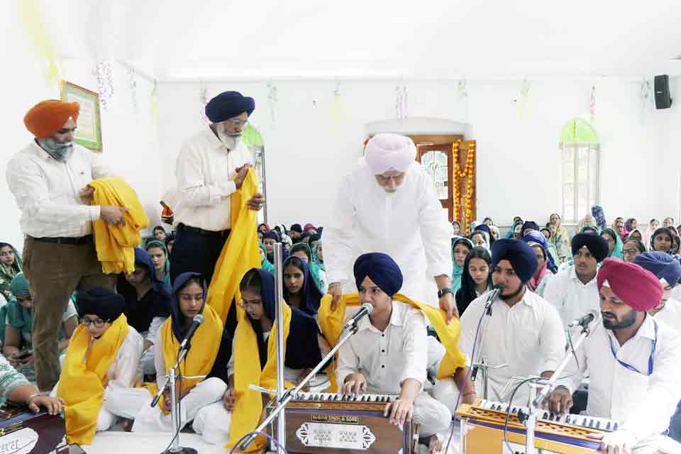 ਖਾਲਸਾ ਕਾਲਜ ਦੇ ਕੈਂਪਸ ’ਚ ਸਥਿਤ ਗੁਰਦੁਆਰਾ ਸਾਹਿਬ ਵਿਖੇ ਸ੍ਰੀ ਗੁਰੂ ਰਾਮਦਾਸ ਸਾਹਿਬ ਜੀ ਦੇ ਪ੍ਰਕਾਸ਼ ਗੁਰਪੁਰਬ ਸਮੇਂ ਕੀਰਤਨ ਕਰ ਰਹੇ ਵਿਦਿਆਰਥੀਆਂ ਨੂੰ ਸਿਰੋਪਾਓ ਭੇਂਟ ਕਰਦੇ ਹੋਏ ਸ: ਸੱਤਿਆਜੀਤ ਸਿੰਘ ਮਜੀਠੀਆ ਨਾਲ ਡਾ. ਮਹਿਲ ਸਿੰਘ ਅਤੇ ਪ੍ਰਿੰਸੀਪਲ ਡਾ. ਆਤਮ ਸਿੰਘ ਰੰਧਾਵਾ।