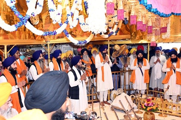 ਇਸੇ ਦੌਰਾਨ ਸ਼੍ਰੋਮਣੀ ਗੁਰਦੁਆਰਾ ਪ੍ਰਬੰਧਕ ਕਮੇਟੀ ਵੱਲੋਂ ਗੁਰਦੁਆਰਾ ਸ੍ਰੀ ਮੰਜੀ ਸਾਹਿਬ ਦੀਵਾਨ ਹਾਲ ਵਿਖੇ ਸ੍ਰੀ ਅਖੰਡਪਾਠ ਸਾਹਿਬ ਦੇ ਭੋਗ ਪਾਏ ਗਏ। ਇਸ ਮੌਕੇ ਸੱਚਖੰਡ ਸ੍ਰੀ ਹਰਿਮੰਦਰ ਸਾਹਿਬ ਦੇ ਹਜ਼ੂਰੀ ਰਾਗੀ ਭਾਈ ਹਰਵਿੰਦਰ ਸਿੰਘ ਦੇ ਜਥੇ ਵੱਲੋਂ ਇਲਾਹੀ ਗੁਰਬਾਣੀ ਕੀਰਤਨ ਕੀਤਾ ਗਿਆ। ਅਰਦਾਸ ਭਾਈ ਬਲਜੀਤ ਸਿੰਘ ਨੇ ਕੀਤੀ ਅਤੇ ਪਾਵਨ ਹੁਕਮਨਾਮਾ ਸੱਚਖੰਡ ਸ੍ਰੀ ਹਰਿਮੰਦਰ ਸਾਹਿਬ ਦੇ ਗ੍ਰੰਥੀ ਸਿੰਘ ਸਾਹਿਬ ਗਿਆਨੀ ਕੇਵਲ ਸਿੰਘ ਨੇ ਸਰਵਣ ਕਰਵਾਇਆ। ਉਨ੍ਹਾਂ ਸ੍ਰੀ ਗੁਰੂ ਨਾਨਕ ਦੇਵ ਜੀ ਦੇ ਜੀਵਨ ਬਾਰੇ ਚਾਨਣਾ ਪਾਉਂਦਿਆਂ ਸੰਗਤਾਂ ਨੂੰ ਗੁਰੂ ਸਾਹਿਬ ਦੇ ਉਪਦੇਸ਼ਾਂ ’ਤੇ ਚੱਲਣ ਦੀ ਪ੍ਰੇਰਨਾ ਕੀਤੀ। ਇਸ ਮੌਕੇ ਸ਼੍ਰੋਮਣੀ ਕਮੇਟੀ ਪ੍ਰਧਾਨ ਐਡੋਵੋਕੇਟ ਹਰਜਿੰਦਰ ਸਿੰਘ ਧਾਮੀ ਨੇ ਸੰਗਤਾਂ ਨੂੰ ਸ੍ਰੀ ਗੁਰੂ ਨਾਨਕ ਦੇਵ ਜੀ ਦੇ ਪ੍ਰਕਾਸ਼ ਪੁਰਬ ਦੀ ਵਧਾਈ ਦਿੰਦਿਆਂ ਕਿਹਾ ਕਿ ਗੁਰੂ ਸਾਹਿਬ ਦੇ ਉਪਦੇਸ਼ ਸਮੁੱਚੀ ਮਨੁੱਖਤਾ ਲਈ ਜੀਵਨ ਰੁਸ਼ਨਾਉਣ ਵਾਲੇ ਹਨ। ਗੁਰੂ ਸਾਹਿਬ ਨੇ ਊਚ-ਨੀਚ, ਜਾਤ-ਪਾਤ ਤੇ ਵਰਨ-ਵੰਡ ਦੀਆਂ ਵਲਗਣਾਂ ਨੂੰ ਤੋੜ ਕੇ ਇਕ ਅਕਾਲ ਪੁਰਖ ਦੇ ਲੜ ਲਾਇਆ। ਉਨ੍ਹਾਂ ਸੰਗਤਾਂ ਨੂੰ ਗੁਰੂ-ਉਪਦੇਸ਼ਾਂ ਅਨੁਸਾਰ ਜੀਵਨ ਬਤੀਤ ਕਰਨ ਦੀ ਅਪੀਲ ਕੀਤੀ। ਗੁਰਦੁਆਰਾ ਸ੍ਰੀ ਮੰਜੀ ਸਾਹਿਬ ਦੀਵਾਨ ਹਾਲ ਵਿਖੇ ਗੁਰਮਤਿ ਸਮਾਗਮ ਦੌਰਾਨ ਪੰਥ ਪ੍ਰਸਿੱਧ ਢਾਡੀ ਤੇ ਕਵੀਸ਼ਰ ਜਥਿਆਂ ਨੇ ਗੁਰ ਇਤਿਹਾਸ ਸਰਵਣ ਕਰਵਾਇਆ।