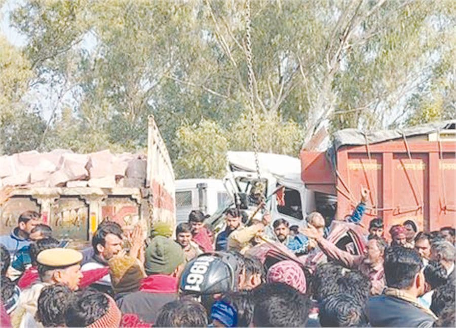 ਇਸ ਦੌਰਾਨ ਕਾਰ ਦੇ ਪਿੱਛੇ ਚੱਲ ਰਹੇ ਟਰੱਕ ਨੇ ਇਸ ਨੂੰ ਟੱਕਰ ਮਾਰ ਦਿੱਤੀ, ਜਿਸ ਨਾਲ ਕਾਰ ਦੋਹਾਂ ਟਰੱਕਾਂ ਵਿਚਾਲੇ ਆ ਗਈ। ਉਨ੍ਹਾਂ ਦੱਸਿਆ ਕਿ ਕਾਰ ਸਵਾਰ ਸਾਰੇ 6 ਲੋਕ ਜੈਪੁਰ ਤੋਂ ਖਾਟੂਸ਼ਾਮ ਜੀ ਮੰਦਰ ਜਾ ਰਹੇ ਸਨ। ਕੈਲਾਸ਼ਚੰਦ ਨੇ ਦੱਸਿਆ ਕਿ ਮਿ੍ਰਤਕਾਂ ਦੀ ਪਛਾਣ ਰਾਹੁਲ ਸਿੰਘ (30), ਭਰਤਪੁਰ ਵਾਸੀ ਅਮਿਤ ਚੌਧਰੀ (29) ਅਤੇ ਬਿਹਾਰ ਵਾਸੀ ਲਲਨ ਸਿੰਘ (27) ਵਜੋਂ ਕੀਤੀ ਗਈ ਹੈ। ਉਨ੍ਹਾਂ ਦੱਸਿਆ ਕਿ ਜ਼ਖ਼ਮੀਆਂ ’ਚ ਇਕ ਚਾਰ ਸਾਲ ਦੇ ਬੱਚੇ ਨੂੰ ਮੁੱਢਲੇ ਇਲਾਜ ਦੇ ਬਾਅਦ ਘਰ ਭੇਜ ਦਿੱਤਾ ਗਿਆ, ਜਦੋਂ ਕਿ 2 ਹੋਰ ਜ਼ਖ਼ਮੀਆਂ ਨੂੰ ਜੈਪੁਰ ਰੈਫ਼ਰ ਕੀਤਾ ਗਿਆ ਹੈ। ਉਨ੍ਹਾਂ ਦੱਸਿਆ ਕਿ ਪੁਲਿਸ ਮਾਮਲੇ ਦੀ ਜਾਂਚ ਕਰ ਰਹੀ ਹੈ।