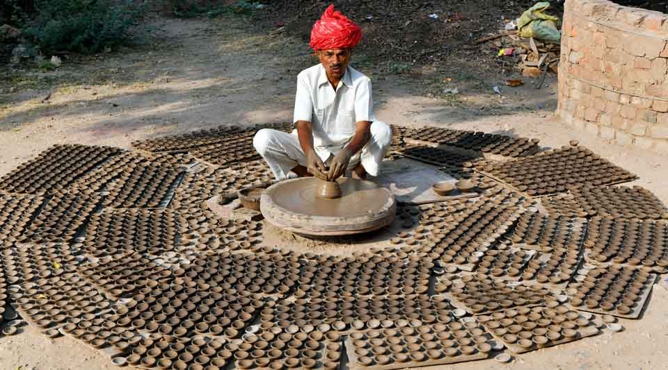 ਦੀਵਾਲੀ ਦਾ ਅਰਥ ਹੈ ਦੀਵਿਆਂ ਦੀ ਕਤਾਰ। ਦੀਪਾਵਲੀ ਸ਼ਬਦ ‘ਦੀਪ’ ਅਤੇ ‘ਆਵਲੀ’ ਦੇ ਸੁਮੇਲ ਤੋਂ ਬਣਿਆ ਹੈ। ਆਵਲੀ ਦਾ ਅਰਥ ਹੈ ਕਤਾਰ, ਇਸ ਤਰ੍ਹਾਂ ਦੀਪਾਵਲੀ ਸ਼ਬਦ ਦਾ ਅਰਥ ਹੈ ਦੀਵਿਆਂ ਦੀ ਕਤਾਰ। ਕਰਵਾ ਚੌਥ ਹੋਵੇ ਜਾਂ , ਅਸ਼ਟਮੀ , ਦੀਪਾਵਲੀ ਜਾਂ ਕੋਈ ਹੋਰ ਤਿਉਹਾਰ, ਘੁਮਿਆਰ ਦੇ ਚੱਕਰ ਅਤੇ ਭਾਂਡਿਆਂ ਤੋਂ ਬਿਨਾਂ ਅਧੂਰਾ ਹੁੰਦਾ ਸੀ । ਪਿੰਡਾਂ ਵਿੱਚ ਦੀਵਾਲੀ ਮੌਕੇ ਦੀਵਿਆਂ ਨੂੰ ਖ਼ਾਸ ਮਹੱਤਤਾ ਦਿੱਤੀ ਜਾਂਦੀ ਸੀ ਤੇ ਲੋਕ ਘਰਾਂ ਵਿੱਚ ਮਿੱਟੀ ਦੇ ਬਣੇ ਦੀਵੇ ਹੀ ਬਾਲਦੇ ਸਨ ਮਗਰ ਆਧੁਨਿਕਤਾ ਨੇ ਕਿਤੇ ਨਾ ਕਿਤੇ ਇਸ ਵਿਰਾਸਤ ਨੂੰ ਕਾਫੀ ਸੱਟ ਮਾਰੀ ਹੈ ।ਘੁਮਿਆਰ ਦੇ ਪਹੀਏ ਤੋਂ ਬਣੇ ਵਿਸ਼ੇਸ਼ ਦੀਵੇ ਦੀਵਾਲੀ ‘ਤੇ ਇਹਨਾਂ ਤਿਉਹਾਰਾਂ ਚਾਰ ਚੰਨ ਲਾਉਂਦੇ ਸਨ ਪਰ ਬਦਲਦੇ ਜੀਵਨ ਸ਼ੈਲੀ ਅਤੇ ਆਧੁਨਿਕ ਮਾਹੌਲ ‘ਚ ਮਿੱਟੀ ਨੂੰ ਆਕਾਰ ਦੇਣ ਵਾਲੇ ਘੁਮਿਆਰ ਅੱਜ ਆਧੁਨਿਕੀਕਰਨ ਦਾ ਸ਼ਿਕਾਰ ਹੋ ਚੱੁਕੇ ਹਨ।