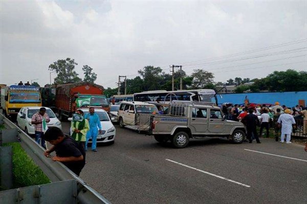ਜਲੰਧਰ – ਹਰਿਆਣਾ ਦੇ ਕਰਨਾਲ ਵਿਚ ਬੀਤੇ ਦਿਨ ਖੱਟਰ ਸਰਕਾਰ ਦੇ ਹੁਕਮਾਂ ‘ਤੇ ਟੋਲ ਪਲਾਜ਼ੇ ਉੱਪਰ ਧਰਨਾ ਦੇ ਰਹੇ ਕਿਸਾਨਾਂ ਉੱਪਰ ਜ਼ਬਰਦਸਤ ਲਾਠੀਚਾਰਜ ਕਰਨ ਵਿਰੁੱਧ ਸੰਯੁਕਤ ਕਿਸਾਨ ਮੋਰਚੇ ਦੀ ਅਗਵਾਈ ਹੇਠ ਕਿਸਾਨਾਂ ਨੇ 12 ਤੋਂ 2 ਵਜੇ ਤਕ ਪੀਏਪੀ ਚੌਕ ਜਾਮ ਕਰ ਦਿੱਤਾ ਹੈ ਜਿਸ ਨਾਲ ਜਲੰਧਰ-ਦਿੱਲੀ ਨੈਸ਼ਨਲ ਹਾਈਵੇ ਜਾਮ ਹੋ ਗਿਆ। ਸੈਂਕੜੇ ਵਾਹਨ ਫਸ ਗਏ ਹਨ। ਸਭ ਤੋਂ ਵੱਧ ਪਰੇਸ਼ਾਨੀ ਅੰਮ੍ਰਿਤਸਰ ਤੇ ਲੁਧਿਆਣਾ ਜਾਣ ਵਾਲੇ ਯਾਤਰੀਆਂ ਨੂੰ ਹੋਵੇਗੀ।