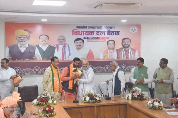 ਨਵੀਂ ਦਿੱਲੀ – ਨਾਇਬ ਸਿੰਘ ਸੈਣੀ ਨੂੰ ਸਰਬਸੰਮਤੀ ਨਾਲ ਭਾਜਪਾ ਦੇ ਵਿਧਾਇਕ ਦਲ ਦਾ ਨੇਤਾ ਚੁਣਿਆ ਗਿਆ ਹੈ। ਭਾਜਪਾ ਵਿਧਾਇਕ ਦਲ ਦੇ ਹਰਿਆਣਾ ਦੇ ਨਵੇਂ ਚੁਣੇ ਗਏ ਭਾਜਪਾ ਵਿਧਾਇਕਾਂ ਨੇ ਇੱਕ ਮੀਟਿੰਗ ਇਹ ਫੈਸਲਾ ਲਿਆ। ਮੀਟਿੰਗ ਦੌਰਾਨ ਕੇਂਦਰੀ ਗ੍ਰਹਿ ਮੰਤਰੀ ਅਮਿਤ ਸ਼ਾਹ ਅਤੇ ਮੱਧ ਪ੍ਰਦੇਸ਼ ਦੇ ਮੁੱਖ ਮੰਤਰੀ ਮੋਹਨ ਯਾਦਵ ਵੀ ਕੇਂਦਰੀ ਅਬਜ਼ਰਵਰ ਵਜੋਂ ਸ਼ਾਮਲ ਹੋਏ। ਸੈਣੀ ਦੇ ਨਾਂ ਦਾ ਪ੍ਰਸਤਾਵ ਵਿਧਾਇਕ ਕ੍ਰਿਸ਼ਨ ਕੁਮਾਰ ਬੇਦੀ ਅਤੇ ਅਨਿਲ ਵਿੱਜ ਨੇ ਰੱਖਿਆ ਅਤੇ ਐਲਾਨ ਕੇਂਦਰੀ ਗ੍ਰਹਿ ਮੰਤਰੀ ਸ਼ਾਹ ਨੇ ਕੀਤਾ। ਮਾਰਚ ਵਿੱਚ ਹਰਿਆਣਾ ਦੇ ਮੁੱਖ ਮੰਤਰੀ ਵਜੋਂ ਮਨੋਹਰ ਲਾਲ ਖੱਟਰ ਦੀ ਥਾਂ ਲੈਣ ਵਾਲੇ ਸੈਣੀ ਵਿਧਾਨ ਸਭਾ ਚੋਣਾਂ ਵਿੱਚ ਭਾਜਪਾ ਦਾ ਮੁੱਖ ਮੰਤਰੀ ਦਾ ਚਿਹਰਾ ਸਨ। ਹਰਿਆਣਾ ਦੀਆਂ ਵਿਧਾਨ ਸਭਾ ਚੋਣਾਂ ਵਿੱਚ ਭਾਜਪਾ ਨੇ ਤੀਜੀ ਵਾਰ ਜਿੱਤ ਹਾਸਲ ਕੀਤੀ ਕਰਦਿਆਂ 48 ਸੀਟਾਂ ਜਿੱਤੀਆਂ। ਸੈਣੀ ਦਾ ਸਹੁੰ ਚੁੱਕ ਸਮਾਗਮ ਵੀਰਵਾਰ (17 ਅਕਤੂਬਰ) ਨੂੰ ਹੋਵੇਗਾ ਜਿਸ ਦੌਰਾਨ ਪ੍ਰਧਾਨ ਮੰਤਰੀ ਨਰਿੰਦਰ ਮੋਦੀ, ਕੇਂਦਰੀ ਗ੍ਰਹਿ ਮੰਤਰੀ ਸ਼ਾਹ ਅਤੇ ਰੱਖਿਆ ਮੰਤਰੀ ਰਾਜਨਾਥ ਸਿੰਘ ਵੀ ਸ਼ਾਮਲ ਹੋਣਗੇ। ਉਧਰ ਸੂਤਰਾਂ ਤੋਂ ਪ੍ਰਾਪਤ ਜਾਣਕਾਰੀ ਅਨੁਸਾਰ ਵਿਧਾਇਕ ਦਲ ਦੇ ਆਗ ਚੁਣੇ ਜਾਣ ਤੋਂ ਬਾਅਦ ਭਾਜਪਾ ਆਗੂ ਨਾਇਬ ਸਿੰਘ ਸੈਣੀ ਨੇ ਬੁੱਧਵਾਰ ਨੂੰ ਹਰਿਆਣਾ ਦੇ ਰਾਜਪਾਲ ਬੰਡਾਰੂ ਦੱਤਾਤ੍ਰੇਅ ਨਾਲ ਰਾਜਭਵਨ ਵਿਚ ਮੁਲਾਕਾਤ ਕੀਤੀ ਅਤੇ ਸੂਬੇ ਵਿਚ ਸਰਕਾਰ ਬਣਾਉਣ ਦਾ ਦਾਅਵਾ ਪੇਸ਼ ਕੀਤਾ ਹੈ।