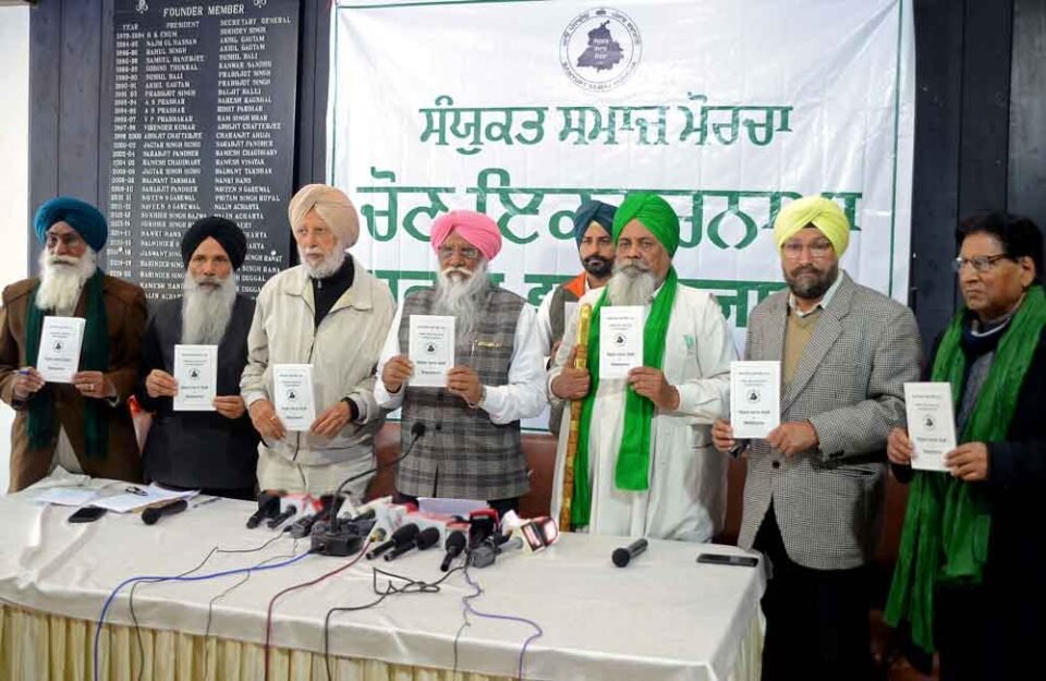 ਚੰਡੀਗੜ੍ਹ – ਪੰਜਾਬ ਵਿੱਚ ਚੋਣਾਂ ਲੜ ਰਹੀਆਂ 22 ਕਿਸਾਨ ਜਥੇਬੰਦੀਆਂ ਦੇ ਸਾਂਝੇ ਮੋਰਚੇ (ਐਸਐਸਐਮ) ਨੇ ‘ਚੋਣ ਸਮਝੌਤੇ’ ਦੇ ਨਾਂ ‘ਤੇ 25 ਸੂਤਰੀ ਮੈਨੀਫੈਸਟੋ ਜਾਰੀ ਕੀਤਾ ਹੈ। ਚੰਡੀਗੜ੍ਹ ਵਿੱਚ ਮੋਰਚਾ ਦੇ ਪ੍ਰਧਾਨ ਬਲਬੀਰ ਰਾਜੇਵਾਲ ਨੇ ਕਿਹਾ ਕਿ ਕਿਸਾਨਾਂ ਨੂੰ ਫਲਾਂ ਤੇ ਸਬਜ਼ੀਆਂ ਸਮੇਤ ਹਰ ਫ਼ਸਲ ‘ਤੇ ਐਮ.ਐਸ.ਪੀ. ਇਸ ਤੋਂ ਇਲਾਵਾ ਪੰਜਾਬ ਦੇ ਸਾਰੇ ਕੌਮੀ ਮਾਰਗ ਟੋਲ ਫਰੀ ਹੋਣਗੇ। ਹੁਸੈਨੀਵਾਲਾ ਅਤੇ ਬਾਘਾ ਸਰਹੱਦਾਂ ਤੋਂ ਪਾਕਿਸਤਾਨ ਅਤੇ ਮੱਧ ਏਸ਼ੀਆ ਨਾਲ ਖੁੱਲ੍ਹਾ ਵਪਾਰ ਹੋਵੇਗਾ।