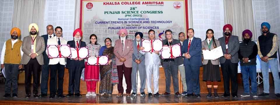ਅੰਮ੍ਰਿਤਸਰ – ਖਾਲਸਾ ਕਾਲਜ ਵਿਖੇ 28ਵੀਂ ਪੰਜਾਬ ਸਾਇੰਸ ਕਾਂਗਰਸ ਅਤੇ ਪੰਜਾਬ ਅਕੈਡਮੀ ਆਫ਼ ਸਾਇੰਸ, ਪਟਿਆਲਾ ਦੀ ਅਗਵਾਈ ਹੇਠ ‘ਵਿਗਿਆਨ ਅਤੇ ਤਕਨਾਲੋਜੀ ’ਚ ਮੌਜੂਦਾ ਰੁਝਾਨ’ ਵਿਸ਼ੇ ’ਤੇ 3 ਰੋਜ਼ਾ ਰਾਸ਼ਟਰੀ ਕਾਨਫਰੰਸ ਦਾ ਸ਼ਾਨਦਾਰ ਆਗਾਜ ਹੋਇਆ। ਕਾਲਜ ਦੇ ਕਾਰਜਕਾਰੀ ਪ੍ਰਿੰਸੀਪਲ ਡਾ. ਅਰਵਿੰਦਰ ਕੌਰ ਕਾਹਲੋਂ ਦੀ ਸਹਿਯੋਗ ਨਾਲ ਆਯੋਜਿਤ ਉਕਤ ਕਾਨਫ਼ਰੰਸ ’ਚ ਖ਼ਾਲਸਾ ਯੂਨੀਵਰਸਿਟੀ ਦੇ ਉੱਪ ਕੁਲਪਤੀ ਡਾ. ਮਹਿਲ ਸਿੰਘ ਨੇ ਮੁੱਖ ਮਹਿਮਾਨ ਅਤੇ  ਪੰਜਾਬ ਅਕਾਦਮੀ ਆਫ਼ ਸਾਇੰਸਜ਼ ਦੇ ਪ੍ਰਧਾਨ ਪ੍ਰੋ: ਤਰਲੋਕ ਸਿੰਘ ਅਤੇ ਪੀ. ਏ. ਐਸ. ਦੇ ਸਕੱਤਰ ਪ੍ਰੋ: ਐਨ.ਆਰ. ਧਾਮੀਵਾਲ ਵਿਸ਼ੇਸ਼ ਮਹਿਮਾਨ ਵਜੋਂ ਸ਼ਿਰਕਤ ਕੀਤੀ।