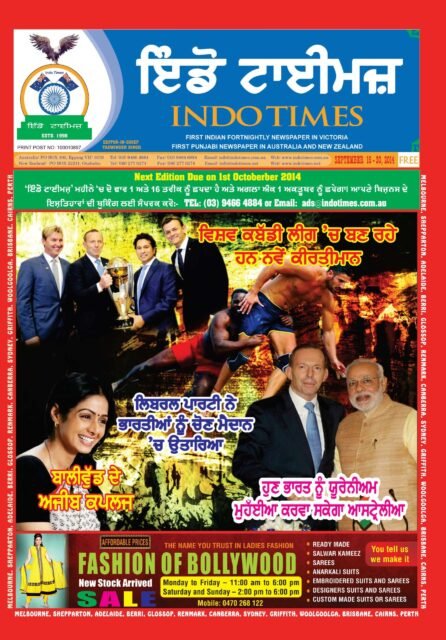 Indo Times is the First Punjabi-Indian Newspaper published in Australia and New Zealand Since 1998.