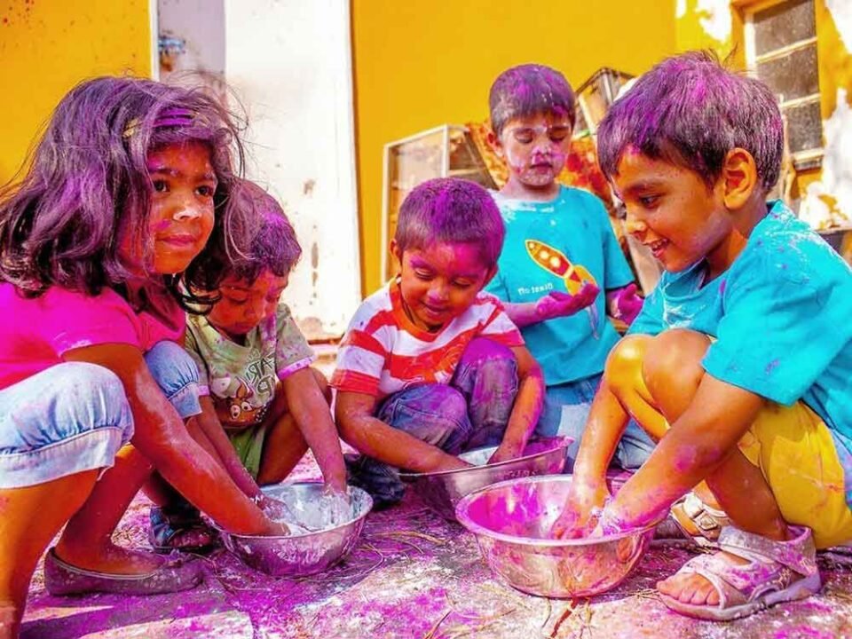 ਰਲ-ਮਿਲ ਬੱਚੇ ਖ਼ੁਸ਼ੀ ਮਨਾਵਣ।
