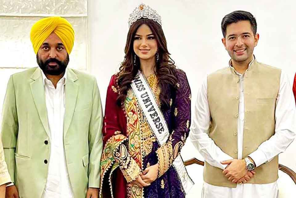ਚੰਡੀਗੜ੍ਹ – ਦੁਨੀਆ ਭਰ ‘ਚ ਪੰਜਾਬ ਦਾ ਨਾਂ ਰੌਸ਼ਨ ਕਰਨ ਵਾਲੀ ਮਿਸ ਯੂਨੀਵਰਸ 2021 ਹਰਨਾਜ਼ ਕੌਰ ਸੰਧੂ ਨੇ ਅੱਜ ਪੰਜਾਬ ਦੇ ਮੁੱਖ ਮੰਤਰੀ ਭਗਵੰਤ ਮਾਨ ਨਾਲ ਮੁਲਾਕਾਤ ਕੀਤੀ ਹੈ। ਇਸ ਮੁਲਾਕਾਤ ਦੌਰਾਨ ਹਰਨਾਜ਼ ਕੌਰ ਦੇ ਮਾਤਾ-ਪਿਤਾ ਵੀ ਮੌਜੂਦ ਸਨ। ਮੁਲਾਕਾਤ ਦੌਰਾਨ ਹਰਨਾਜ਼ ਕੌਰ ਸੰਧੂ ਨੇ ਭਗਵੰਤ ਮਾਨ ਦੇ ਕੰਮਾਂ ਦੀ ਤਾਰੀਫ਼ ਕੀਤੀ ਹੈ। ਹਰਨਾਜ਼ ਨੇ ਕਿਹਾ ਕਿ ਉਹ ਉਨ੍ਹਾਂ ਦੀ ਪਹਿਲਾਂ ਤੋਂ ਹੀ ਬਹੁਤ ਵੱਡੀ ਫੈਨ ਰਹੀ ਹੈ। ਹਰਨਾਜ਼ ਸੰਧੂ ਨੇ ਕਿਹਾ ਕਿ ਕਲਾਕਾਰ ਹੋਣ ਦੇ ਨਾਤੇ ਪੰਜਾਬ ਦੇ ਨਵੇਂ ਮੁੱਖ ਮੰਤਰੀ ਭਗਵੰਤ ਮਾਨ ਲਈ ਉਨ੍ਹਾਂ ਦੇ ਮਨ ਵਿੱਚ ਬਹੁਤ ਸਤਿਕਾਰ ਹੈ। ਉਹ ਬੁੱਧਵਾਰ ਉਨ੍ਹਾਂ ਨੂੰ ਵੀ ਮਿਲੀ। ਸਰਕਾਰ ਬਣੀ ਨੂੰ ਕੁਝ ਦਿਨ ਹੀ ਹੋਏ ਹਨ। ਇਨ੍ਹੀਂ ਦਿਨੀਂ ਜੋ ਕੰਮ ਉਨ੍ਹਾਂ ਨੇ ਸ਼ੁਰੂ ਕੀਤਾ ਹੈ, ਉਸ ਤੋਂ ਬਹੁਤ ਪ੍ਰਭਾਵਿਤ ਹੋ ਕੇ ਉਹ ਵੀ ਉਨ੍ਹਾਂ ਦੇ ਨੇਕ ਕੰਮ ਵਿੱਚ ਸਹਿਯੋਗ ਕਰਨਾ ਚਾਹੁੰਦੀ ਹੈ।