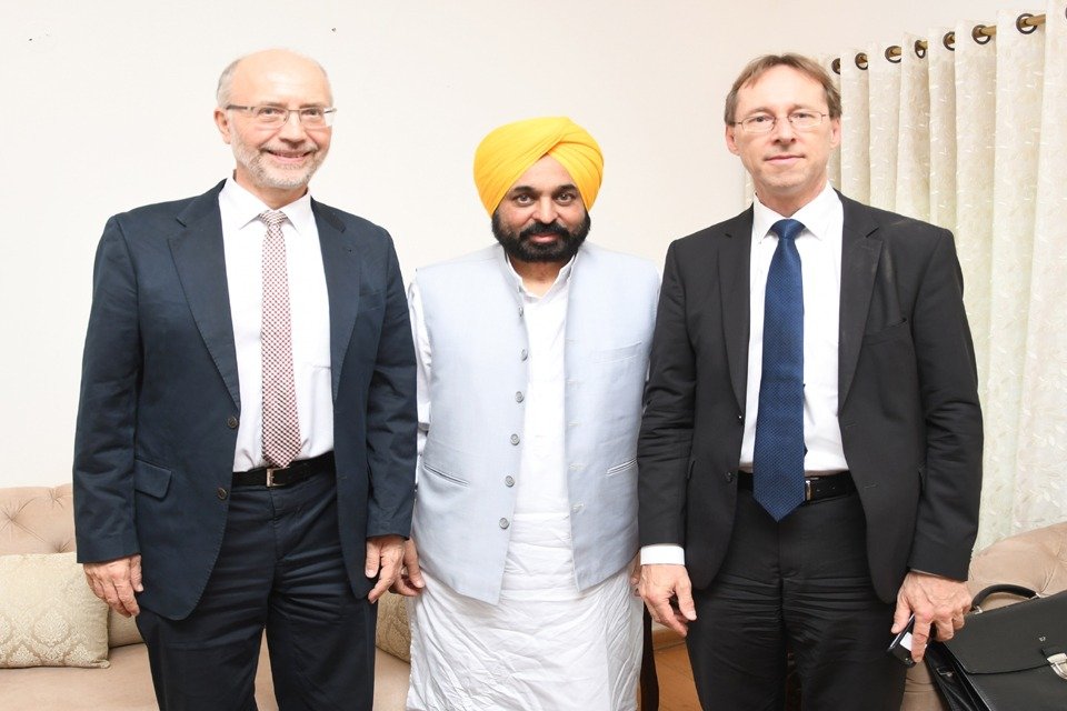 ਚੰਡੀਗੜ – ਪੰਜਾਬ ਦੇ ਮੁੱਖ ਮੰਤਰੀ ਭਗਵੰਤ ਮਾਨ ਨੇ ਪੰਜਾਬ ਨੂੰ ਮੌਕਿਆਂ ਦੀ ਧਰਤੀ ਵਜੋਂ ਪੇਸ਼ ਕਰਦਿਆਂ ਸੂਬੇ ਵਿੱਚ ਨਿਵੇਸ਼ ਲਈ ਜਰਮਨ ਨਿਵੇਸ਼ਕਾਂ ਨੂੰ ਸੱਦਾ ਦਿੱਤਾ। ਮੁੱਖ ਮੰਤਰੀ ਦੇ ਸਰਕਾਰੀ ਨਿਵਾਸ ਉਤੇ ਵੀਰਵਾਰ ਸਵੇਰੇ ਮੁਲਾਕਾਤ ਲਈ ਪੁੱਜੇ ਜਰਮਨ ਸਫ਼ਾਰਤਖਾਨੇ ਦੇ ਮਿਨਿਸਟਰ ਇਕਨਾਮਿਕ ਐਂਡ ਗਲੋਬਲ ਅਫੇਅਰਜ਼ ਡਾ. ਸਟੀਫਨ ਕੌਚ ਤੇ ਹੈੱਡ ਐਨਰਜੀ ਇੰਡੀਆ ਡਾ. ਵਿਨਫਰਾਈਡ ਡੈਮ ਨੂੰ ਭਗਵੰਤ ਮਾਨ ਨੇ ਕਿਹਾ ਕਿ ਇੰਜਨੀਅਰਿੰਗ, ਊਰਜਾ ਤੇ ਬਾਇਓਮਾਸ ਤੇ ਹੋਰ ਖੇਤਰਾਂ ਵਿੱਚ ਜਰਮਨਾਂ ਦੀ ਮੁਹਾਰਤ ਦੀ ਦੁਨੀਆ ਕਾਇਲ ਹੈ। ਉਨਾਂ ਕਿਹਾ ਕਿ ਪੰਜਾਬ ਹੋਰ ਖੇਤਰਾਂ ਦੇ ਨਾਲ-ਨਾਲ ਇਨਾਂ ਖੇਤਰਾਂ ਵਿੱਚ ਨਿਵੇਸ਼ ਲਈ ਜਰਮਨਾਂ ਨਾਲ ਸਹਿਯੋਗ ਕਰਨ ਲਈ ਤਿਆਰ ਹੈ। ਭਗਵੰਤ ਮਾਨ ਨੇ ਕਿਹਾ ਕਿ ਸੂਬਾ ਸਰਕਾਰ ਸਨਅਤੀ ਵਿਕਾਸ ਵਿੱਚ ਪੰਜਾਬ ਨੂੰ ਮੋਹਰੀ ਸੂਬੇ ਵਜੋਂ ਉਭਾਰਨ ਲਈ ਵਚਨਬੱਧ ਹੈ।